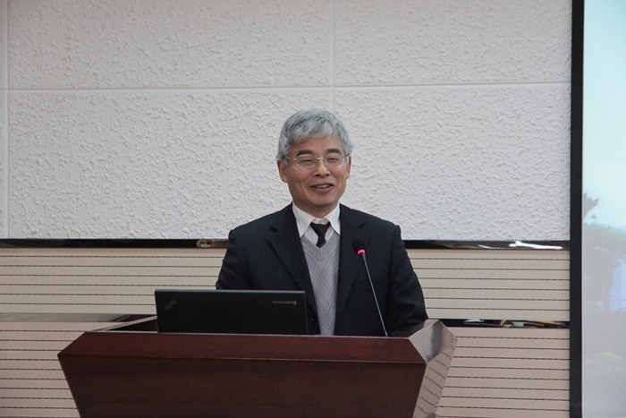 刘洪来教授从自己的团体开始介绍,与在座师生分享了团队的基本情况,尤其是团队的科研方向和目前的一些研究进展。接着,刘教授从两亲性胶体颗粒在研究中的重要意义开始,着重介绍了他们研究小组运用理论计算深入研究了多元聚合物在固体表面的溶剂效应,此外,还介绍了他们的理论计算成果成功地指导了催化剂表面改性的实验研究工作。刘教授巧妙地将深奥的理论计算研究讲得简单易懂,老师和学生都从中受益匪浅。之后,刘教授还与部分老师和学生进行了更加深入的学术交流。