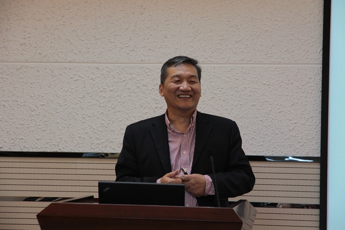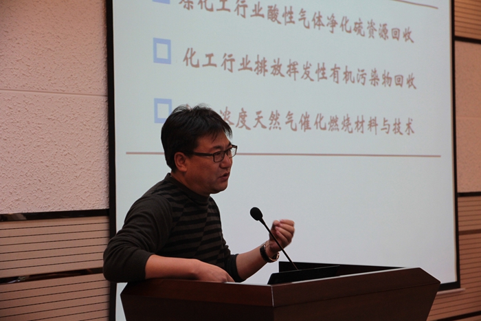 85届本科毕业生、国家科学技术进步奖二等奖获得者(第一完成人)、中国石油兰州化工研究中心教授级高级工程师高雄厚作了题为“催化裂化催化剂发展趋势与中国石油创新技术”的报告。高教授首先分享了自己当年的一些师大轶事,表达了对母校深切的怀念之情。随后,高教授旁征博引,紧密结合时事,向在场师生重点介绍了催化剂、催化技术在国内外的发展和最新应用。高教授诙谐的语言和朴实的表达引发了在场师生的强烈兴趣。会上,部分研究生就我国催化技术现状等问题与高教授展开了热烈的交流。