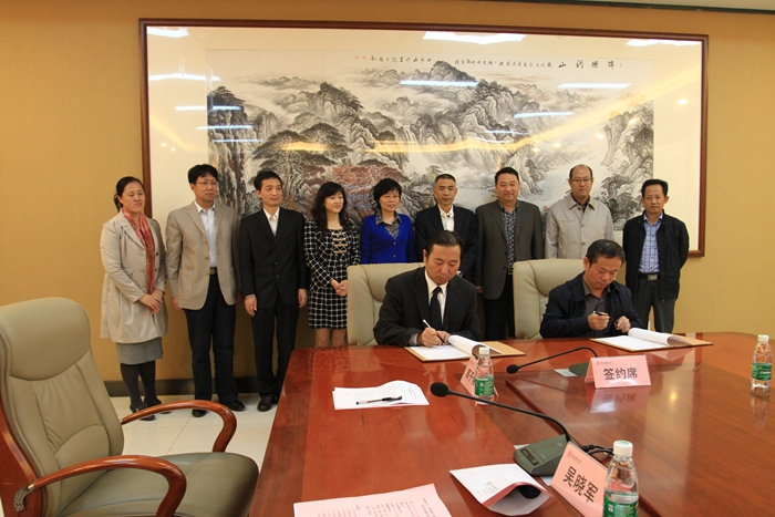 院长高子伟与中石化洛阳分公司人力资源处处长陈建国签订实习基地合作协议书,洛阳石化公司成为了蘑菇视频