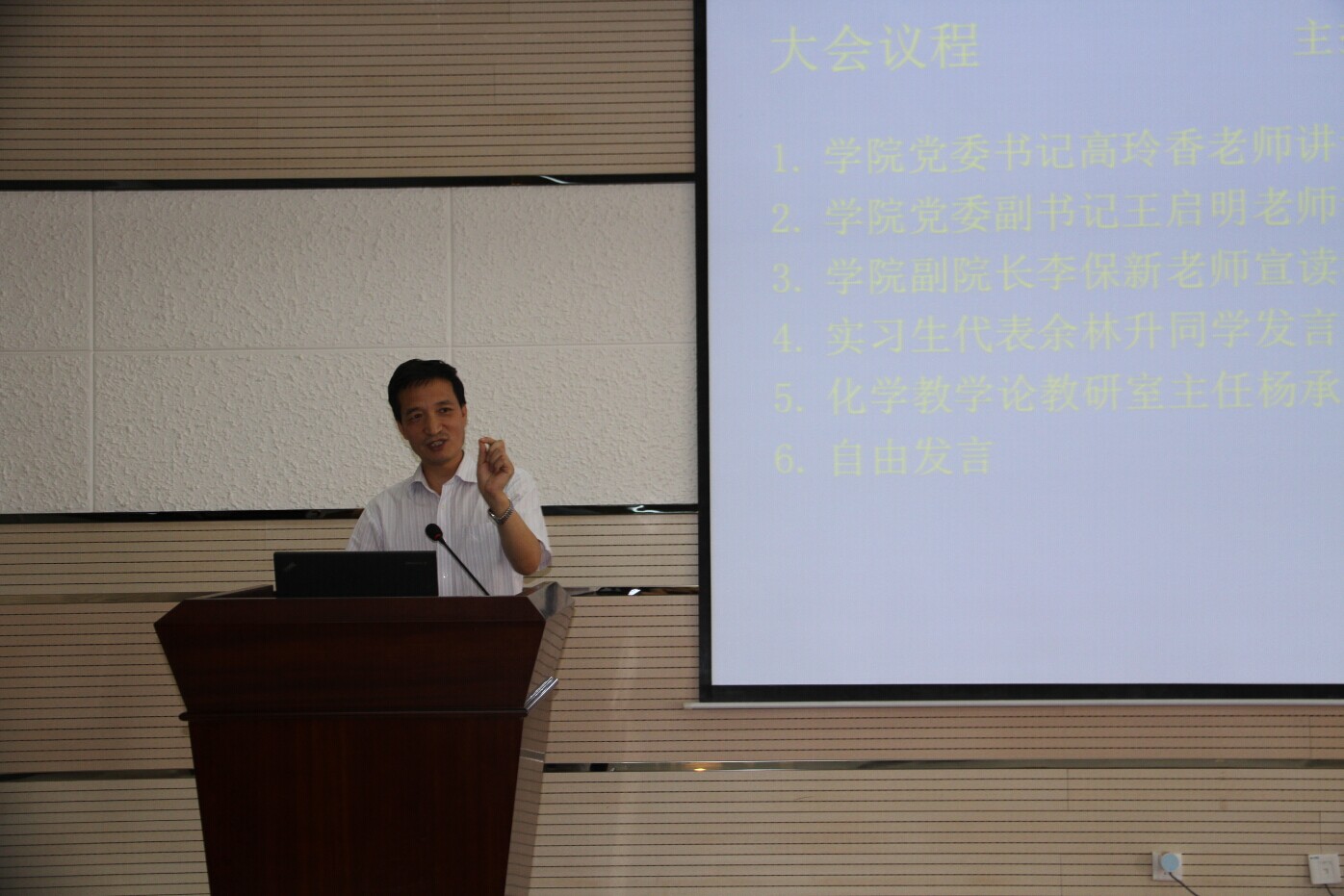 首先,高玲香书记强调了教育教学实习的重要性,希望同学抓住宝贵的锻炼机会,希望同学们明确目标,审视和检查自己,就自己的薄弱环节针对性地重点锻炼,量身打造自己的实习计划。王启明副书记重点强调了实习期间的安全问题和实习纪律,指出实习生是代表了学校、学院形象,言谈举止都要得体大方,王启明副书记要求全体学生实习期间严格遵守实习纪律,保证信息通常,保持联络。李保新副院长宣读了教育实习计划,同时对教育教学实习做了较为概括的介绍,指出教学实习环节是大学生教学技能培养的核心环节,作为大学生要具备扎实的教学基本功,提升知识深度和广度,要做到专业知识自信,保证所传授知识的科学性和准确性,希望同学要勤于虚心向指导老师请教。随后,2011级化学2班余林升同学代表本级实习同学发言,号召同学们勇于担当,以教育为己任,团结奋进,不辱使命,完成教育教学实习,以优异的成绩来回报母校的培养和实习地师生的信任。最后杨承印老师结合实习中具体事例,详细讲解了实习工作中的重要问题:重视安全问题,以教育教学实习为核心人物,人际关系从简,加强与实习基地老师的沟通,重视教育调查报告,注重教学反思。通过本次动员大会,使2011级实习生更加明确了实习的要求和方向。