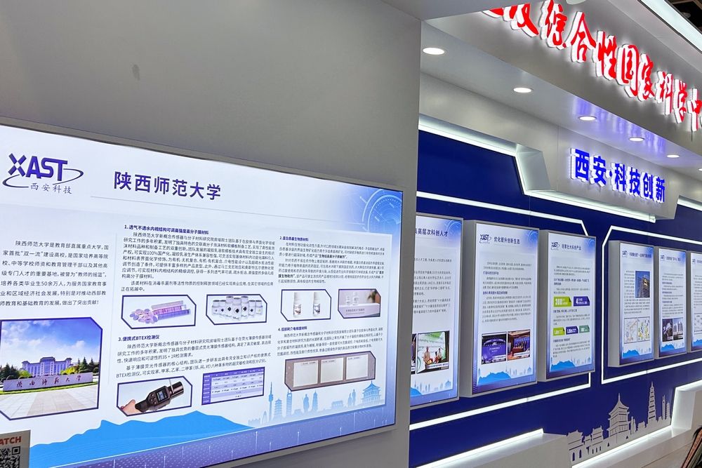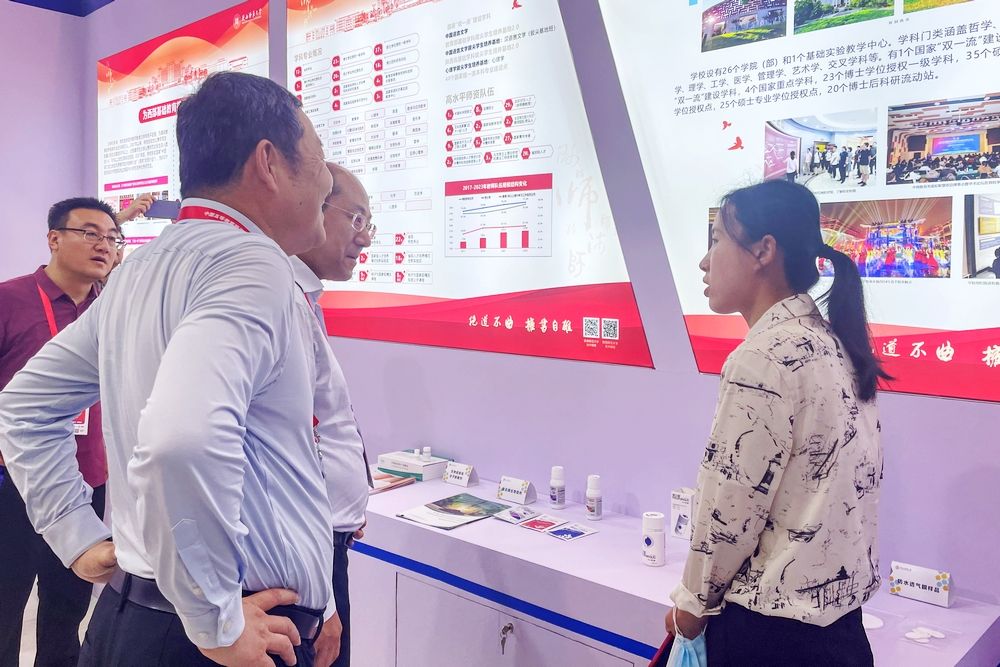 2024年4月15日至17日,新概念传感器与分子材料研究工程技术人员王佩参加了由中国高等教育学会主办,厦门大学等单位承办的第61届中国高等教育博览会,展示介绍了研究院开发的二氧化氯气体缓释产品与防水透气膜材料。
