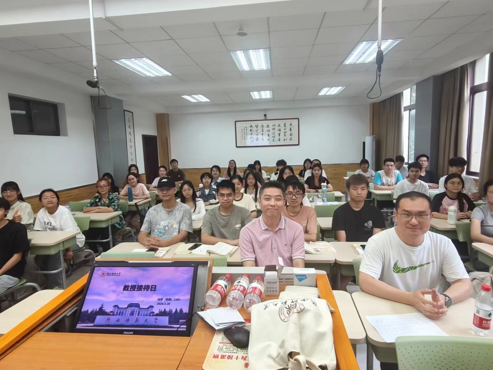 5月30日,化学2302班在雁塔校区教学八楼8306教室举办“教授接待日”活动,雷海涛副教授应邀参加。化学2302班班主任郭书文与班级全体同学参加活动。雷教授从自己的求学经历入手,从学习、生活、兴趣等方面分享经验、提出建议。他激励同学们在校期间积极进取,努力奋斗,成为教师后坚持终身学习,提升自我。郭书文老师在总结发言中鼓励同学们养成良好学习习惯,把握学习机会,加强学习实践,提高自身素质。