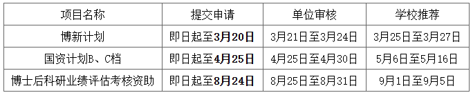 (一)各单位要按照通知要求,着力做好宣传,广泛动员符合条件的人员应报尽报。入选“国资计划”的人员将按规定享受国家资助,学校予以配套支持。其中,入选“博新计划”的人员在职称评审中可以考核认定方式予以确定副高级专业技术职务。