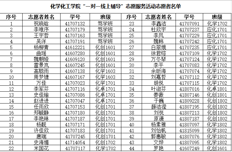 根据《关于公开招募蘑菇视频 “一对一线上辅导”志愿服务活动志愿者的通知》,按照蘑菇视频 “一对一线上辅导”志愿服务活动志愿者招募条件,通过公开招募、自愿报名、择优录取,现拟定祝晓晗等44名同学为活动志愿者,名单如下,现予以公示: