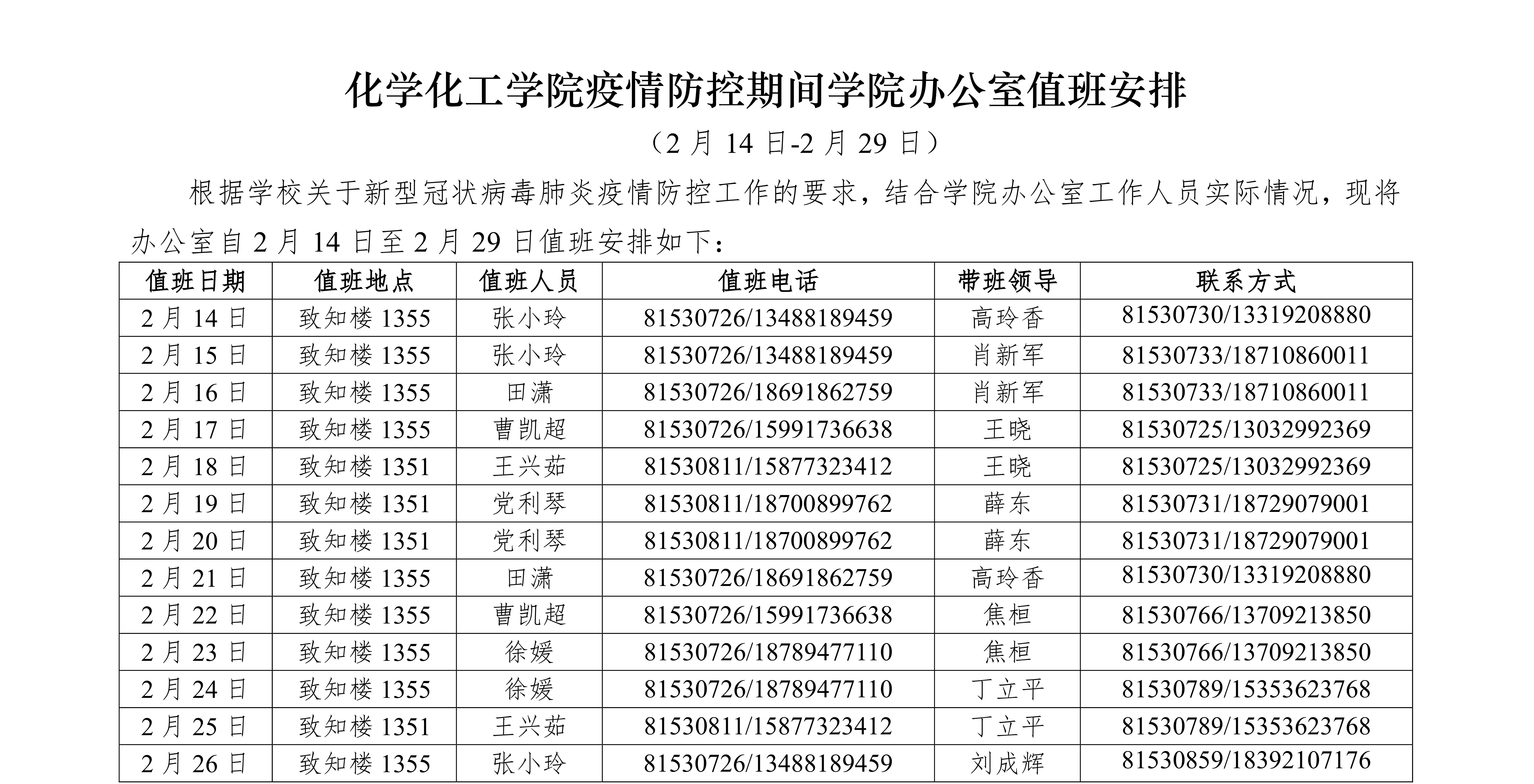 蘑菇视频 疫情防控期间学院办公室值班安排 (2月14日-2月29日)