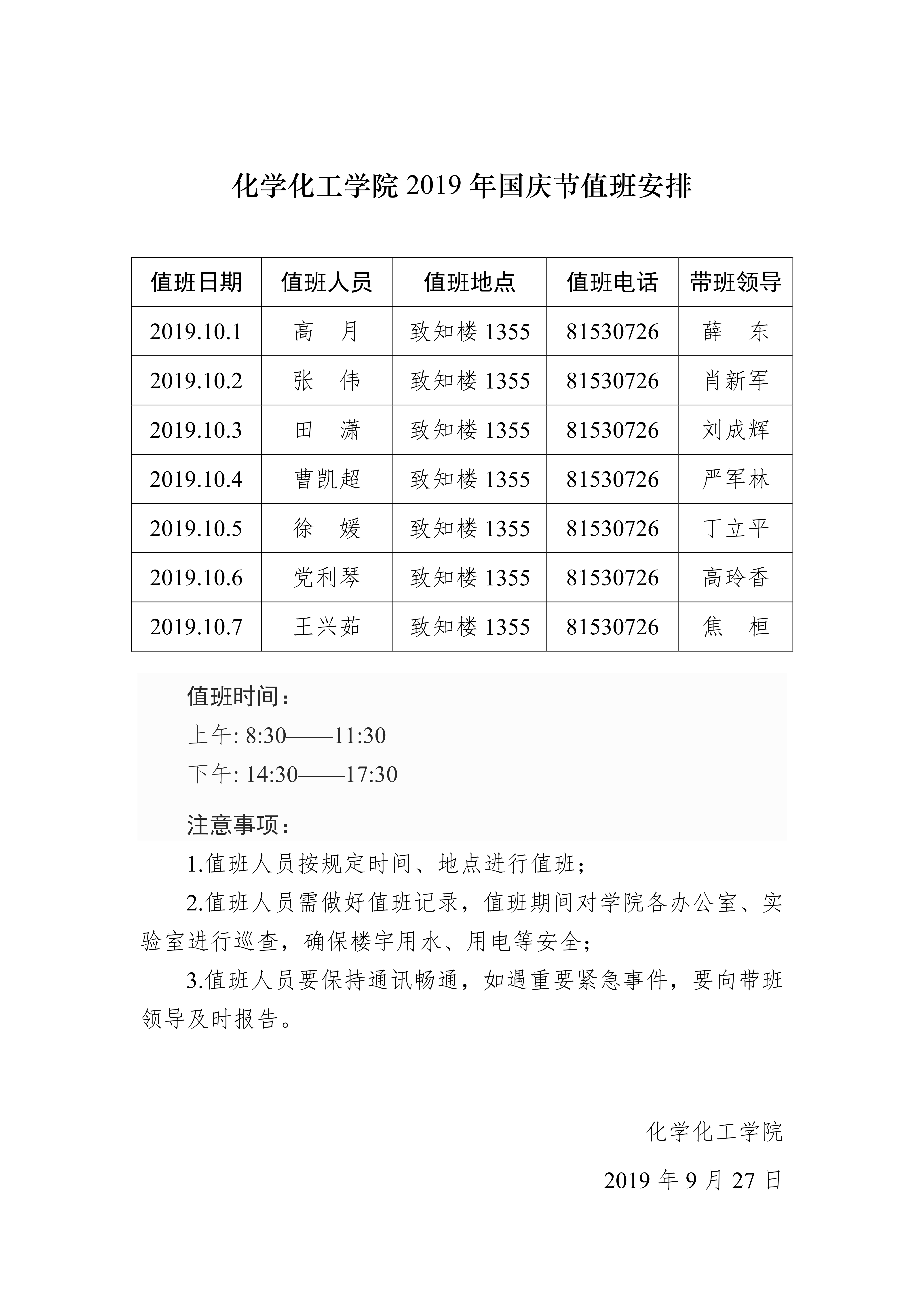蘑菇视频 2019年国庆节值班安排