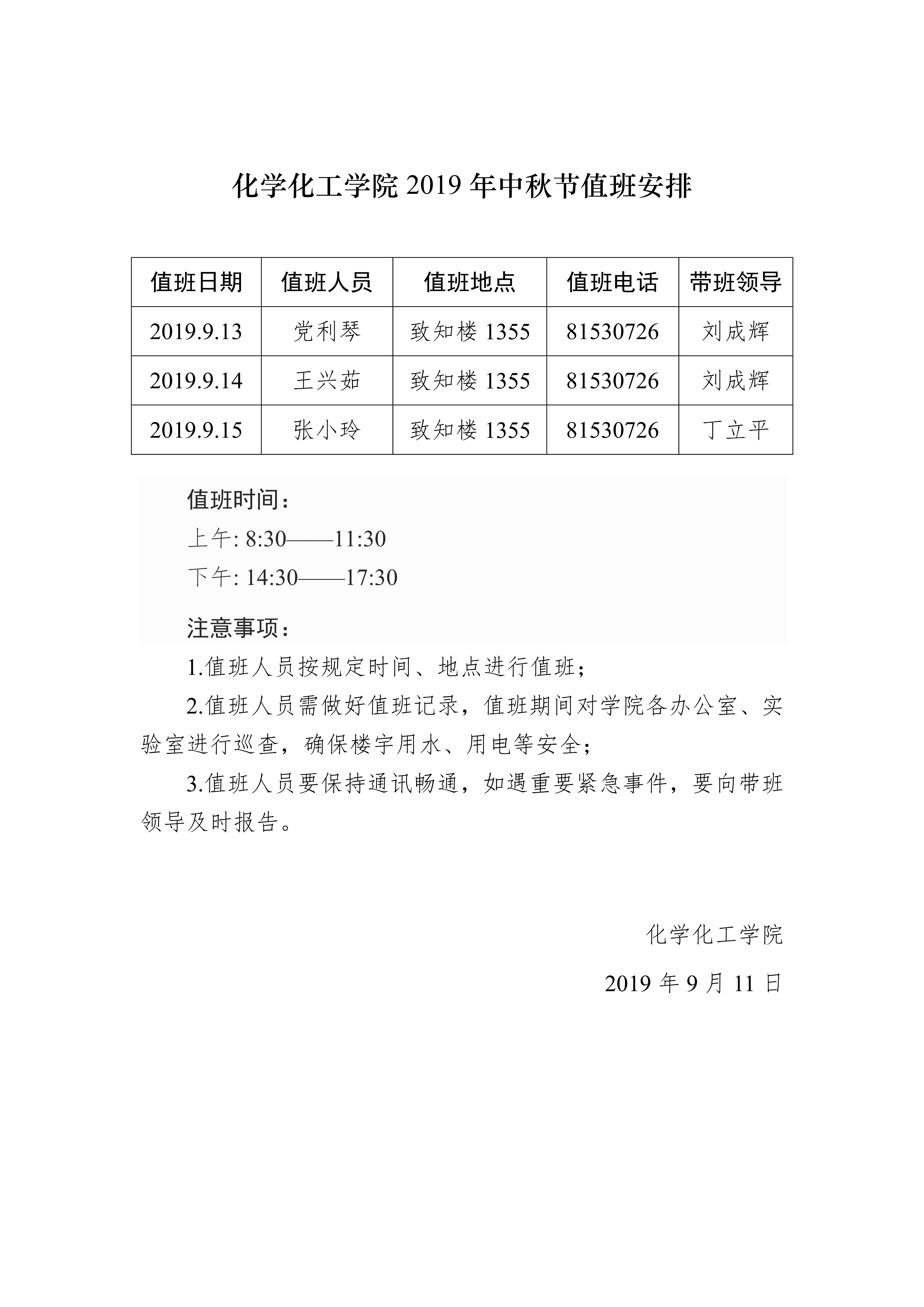 蘑菇视频 2019年中秋节值班安排