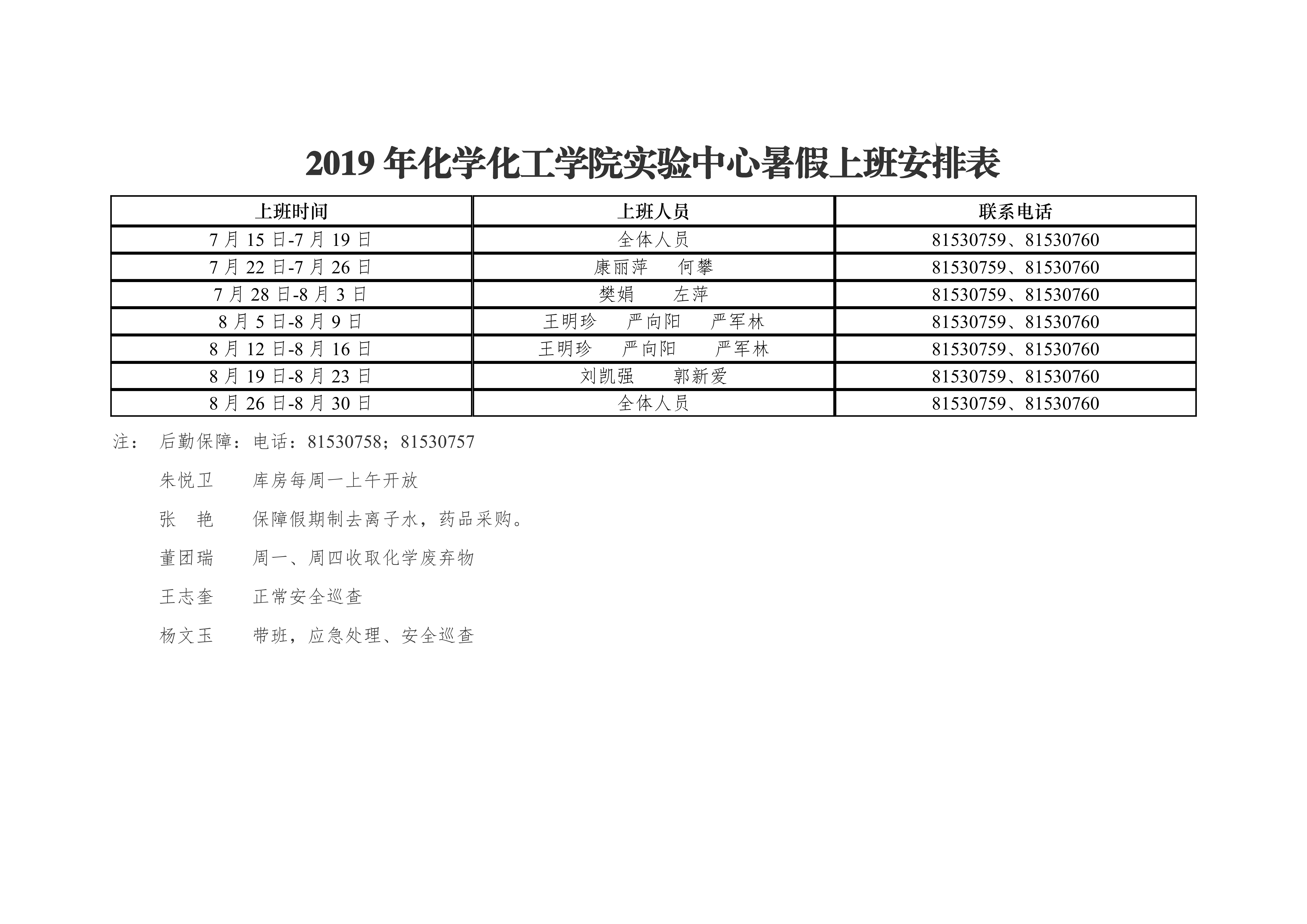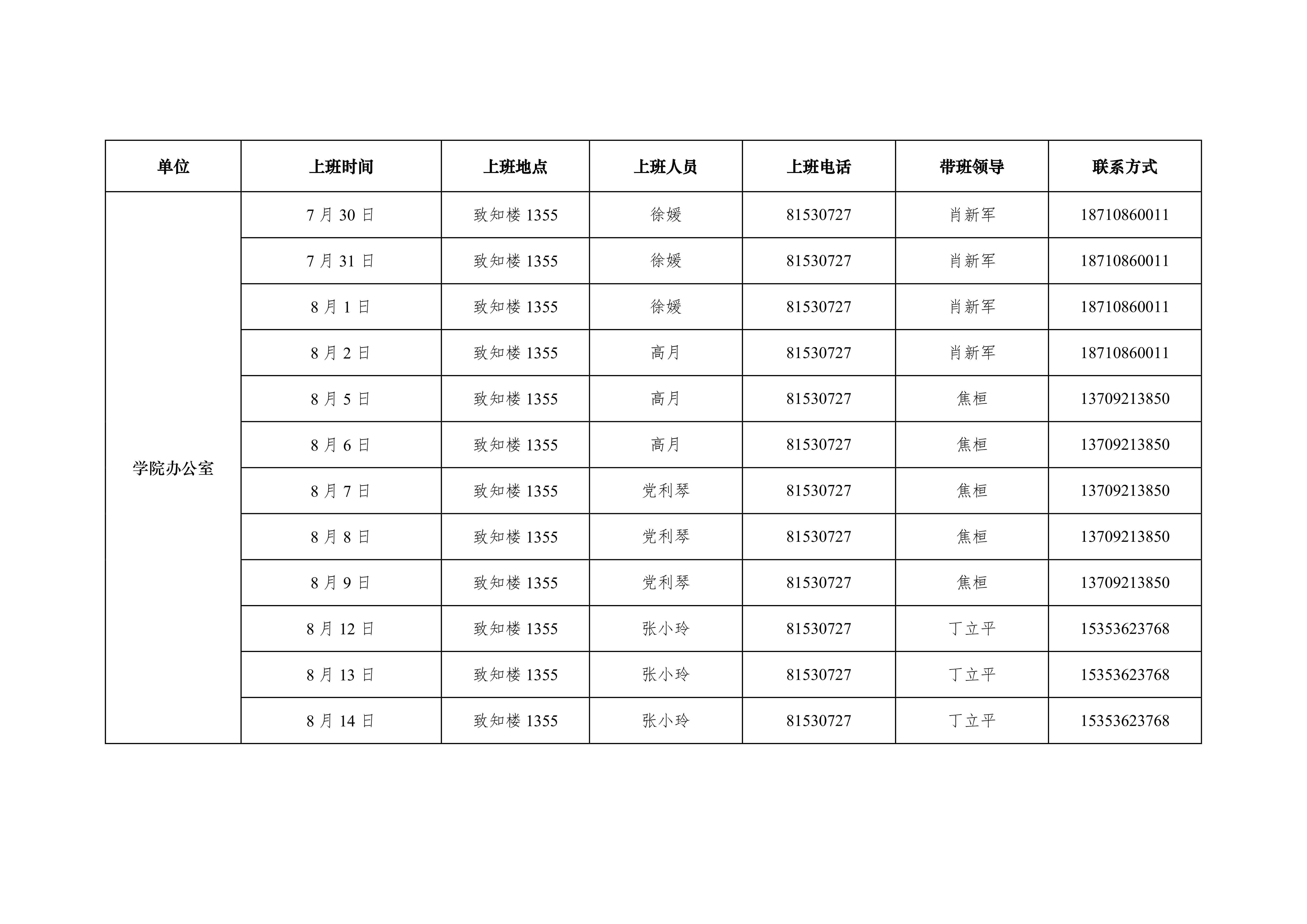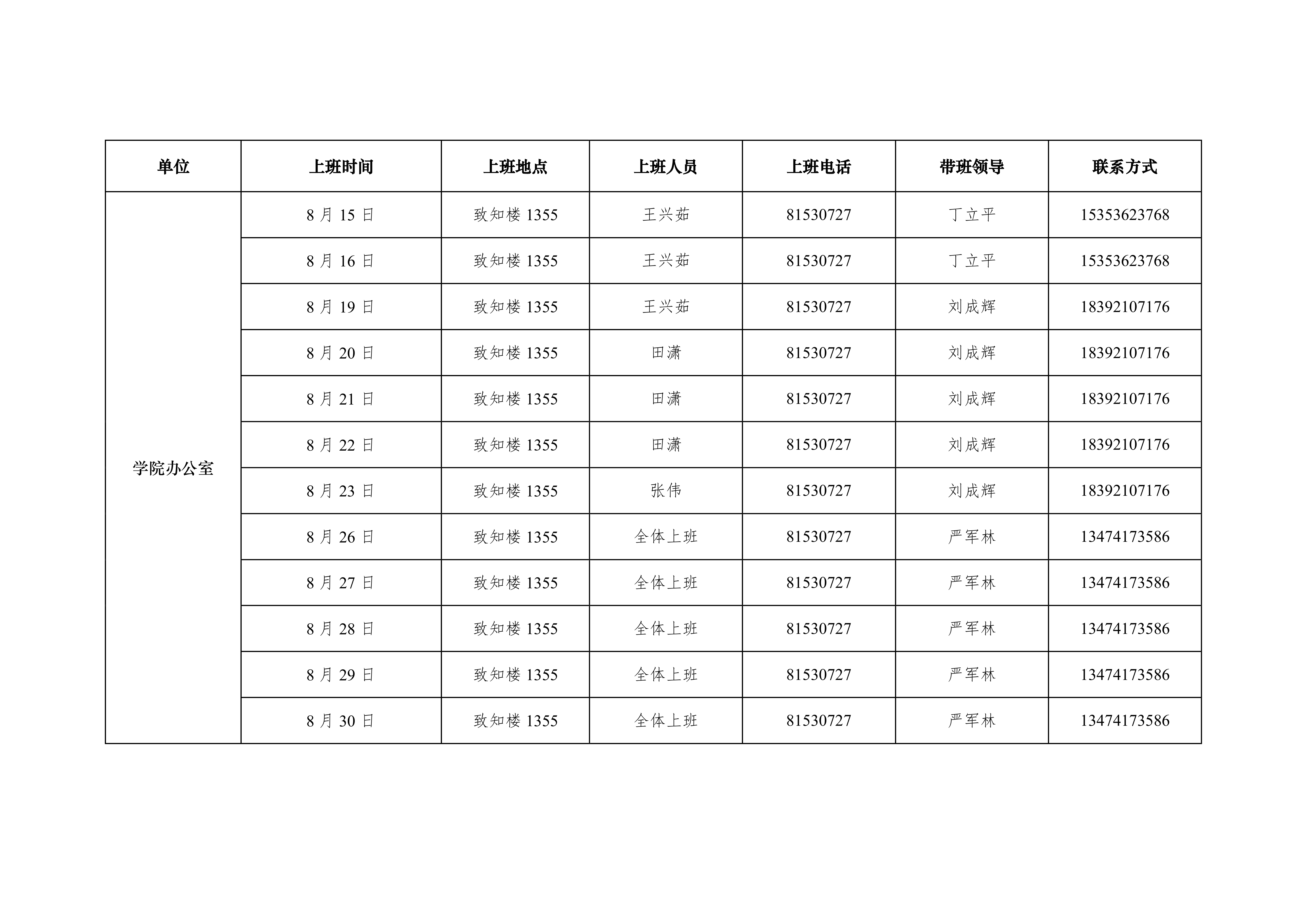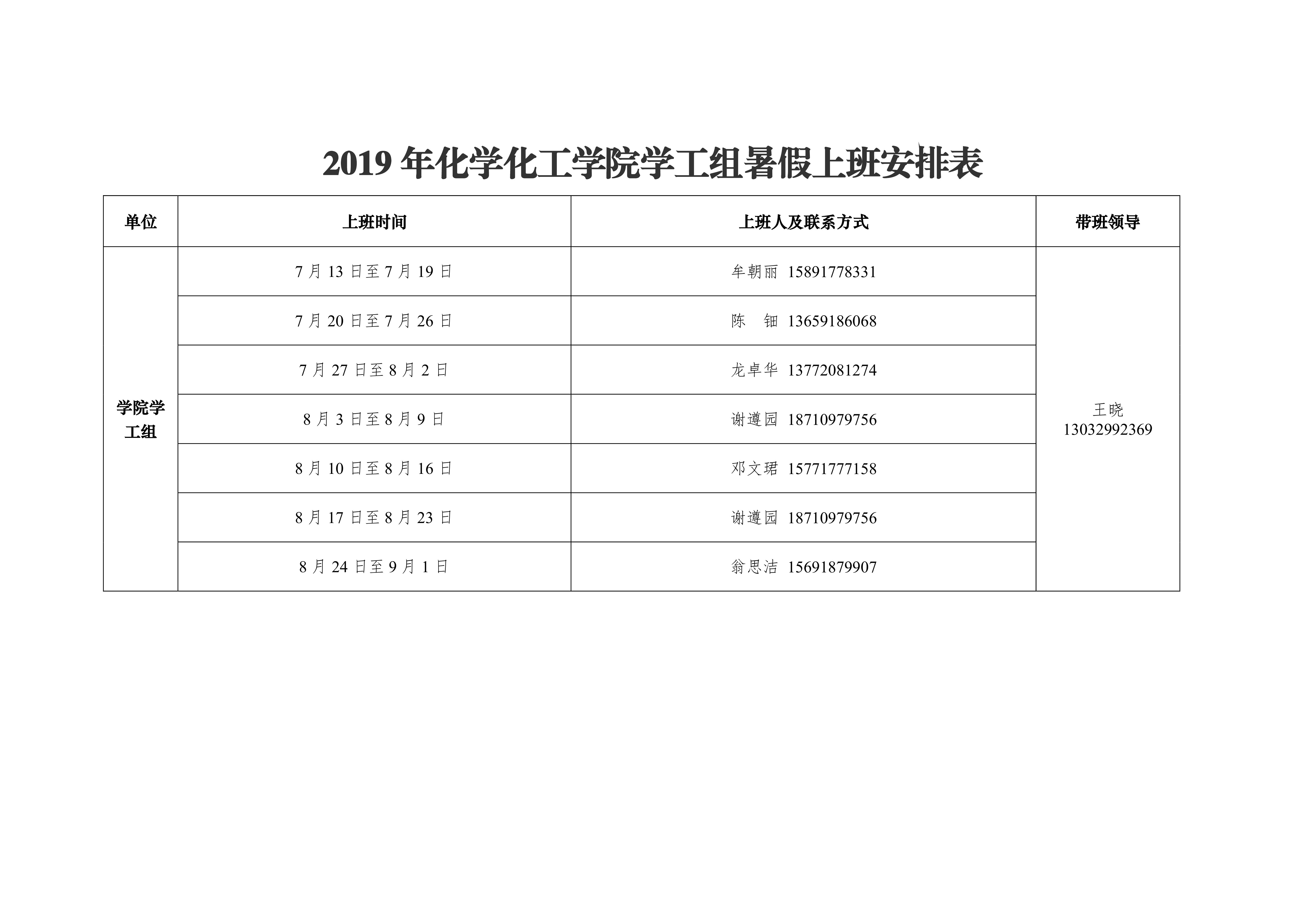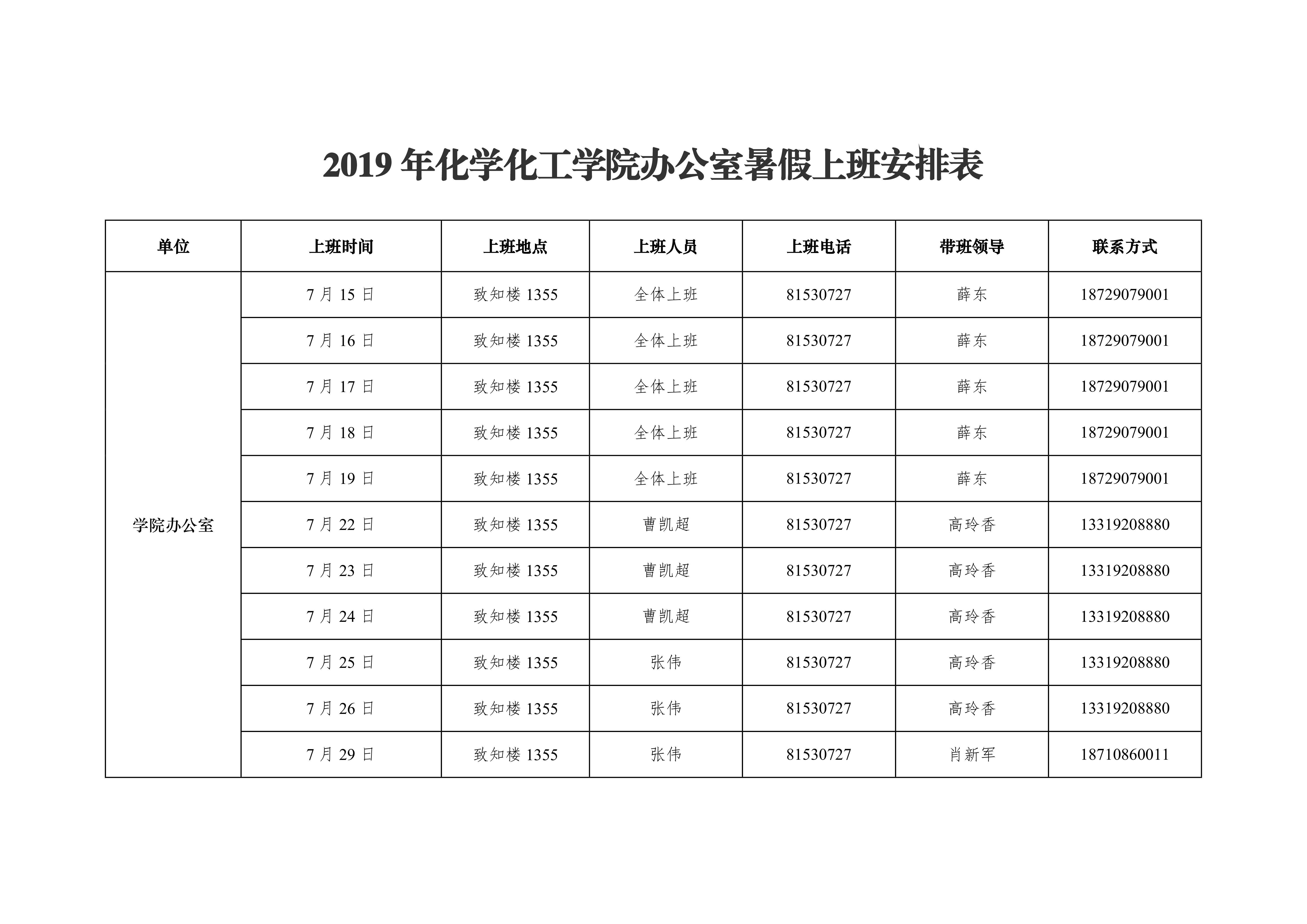 2019年蘑菇视频 办公室暑假上班安排表