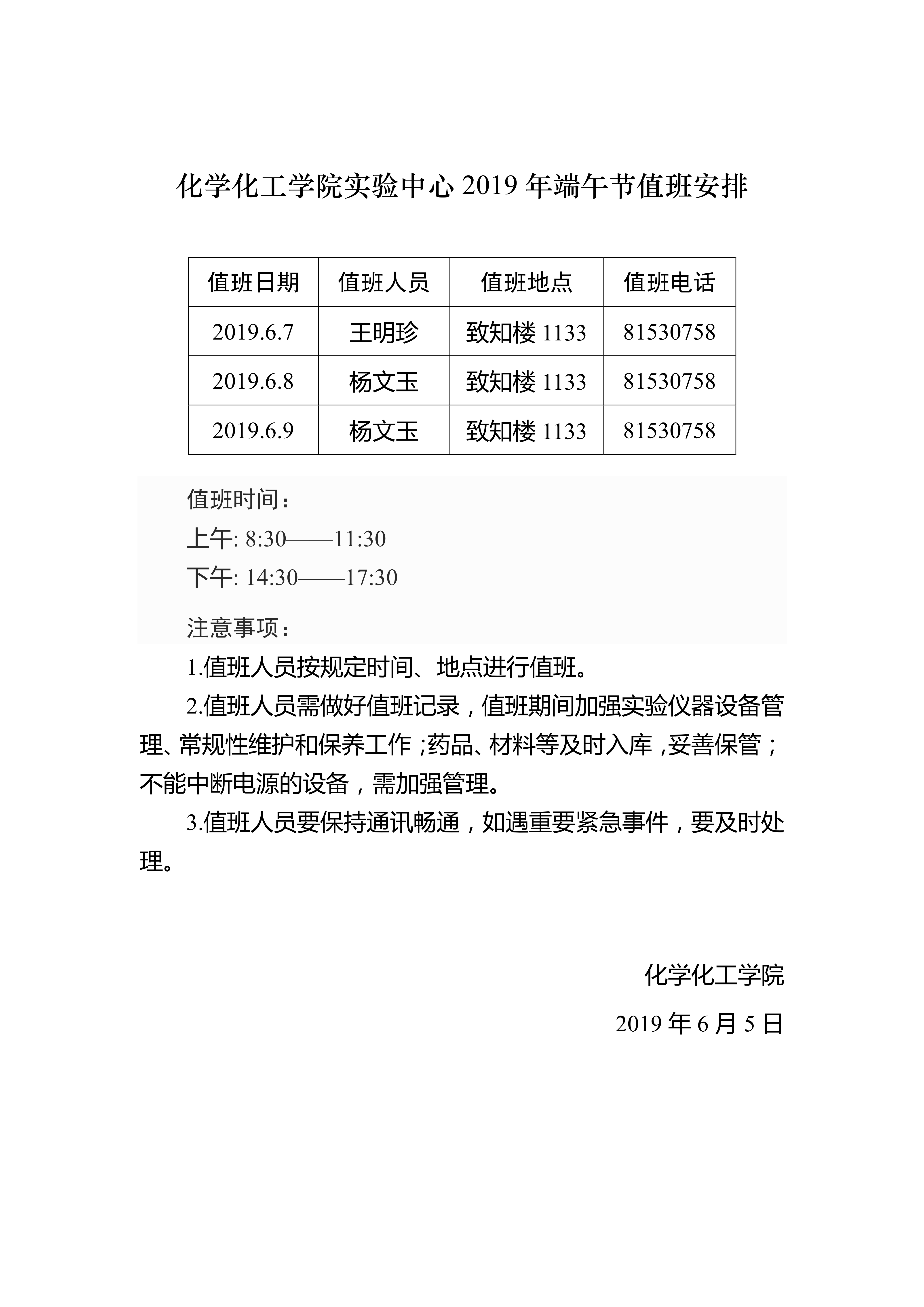 蘑菇视频 实验中心2019年端午节值班安排
