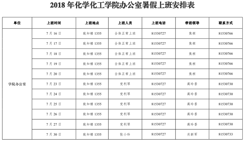 2018年蘑菇视频 暑假上班安排表