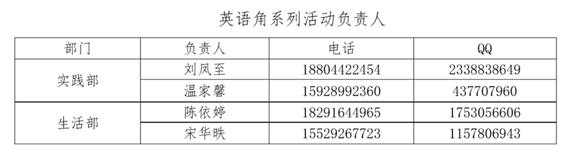 英语角系列活动的相关工作,特此通知,请遵照执行。