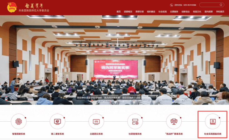 6.关于社会实践学生端登陆,可从“启夏青年网站——社会实践报备系统”进行登陆,如下图所示: