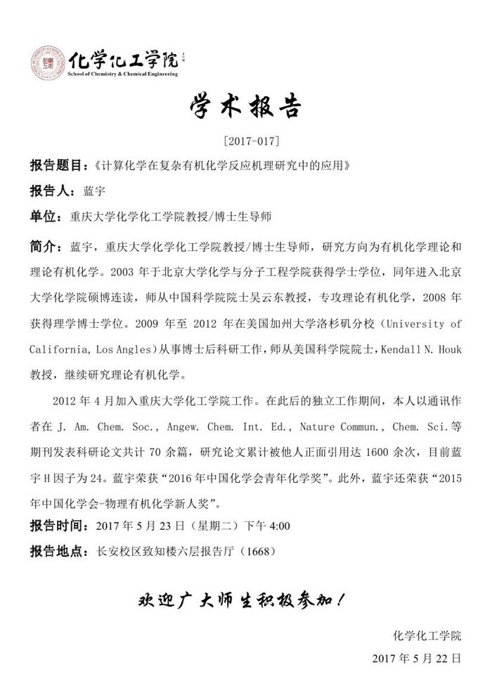 蓝宇教授学术报告预告[2017-017]