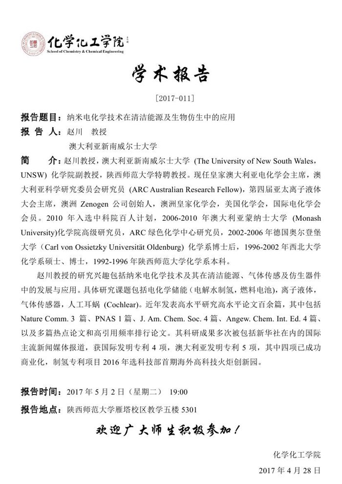 赵川教授学术报告预告[2017-011]