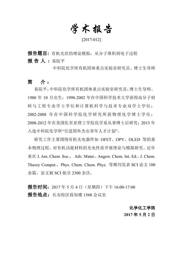 易院平研究员学术报告预告[2017-012]