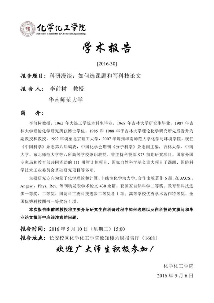 学术报告预告[2016-30]