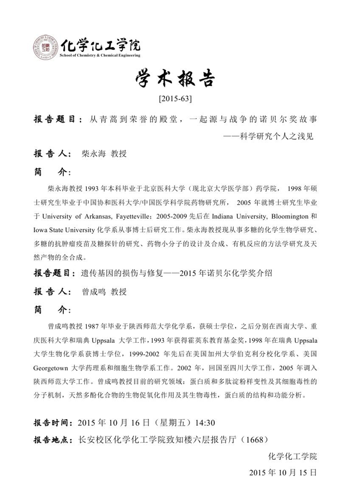 学术报告预告[2015-63]