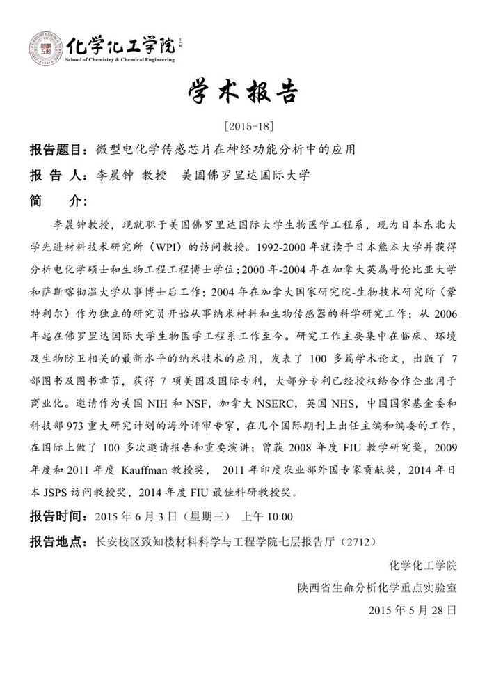学术报告预告[2015-18]