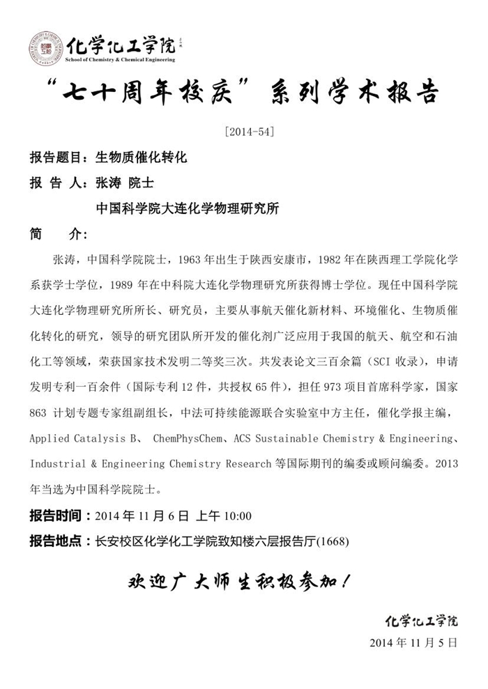 “七十周年校庆系列讲座” [2014-54]