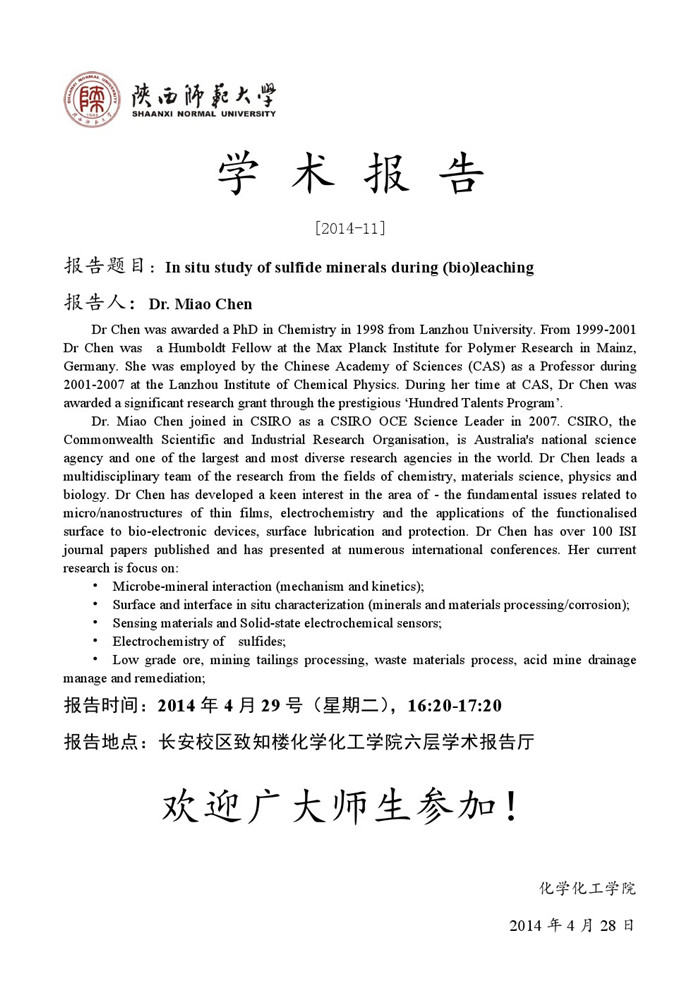 学术报告预告[2014-11]