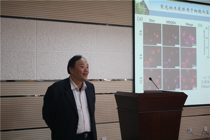 南京大学特聘教授、研究生院副院长,国家杰出青年科学基金获得者朱俊杰教授,在学院六层报告厅做了题为“生物纳米探针对肿瘤细胞及相关物的检测” 的学术报告。朱俊杰教授从研究细胞与纳米探针和界面的相互作用,利用光电化学技术,实现对疾病标志物及细胞内容物的灵敏检测入手,详细介绍了该研究组在肿瘤细胞及相关物检测中的研究进展。