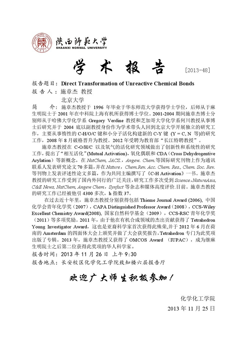 学术报告预告[2013-48]