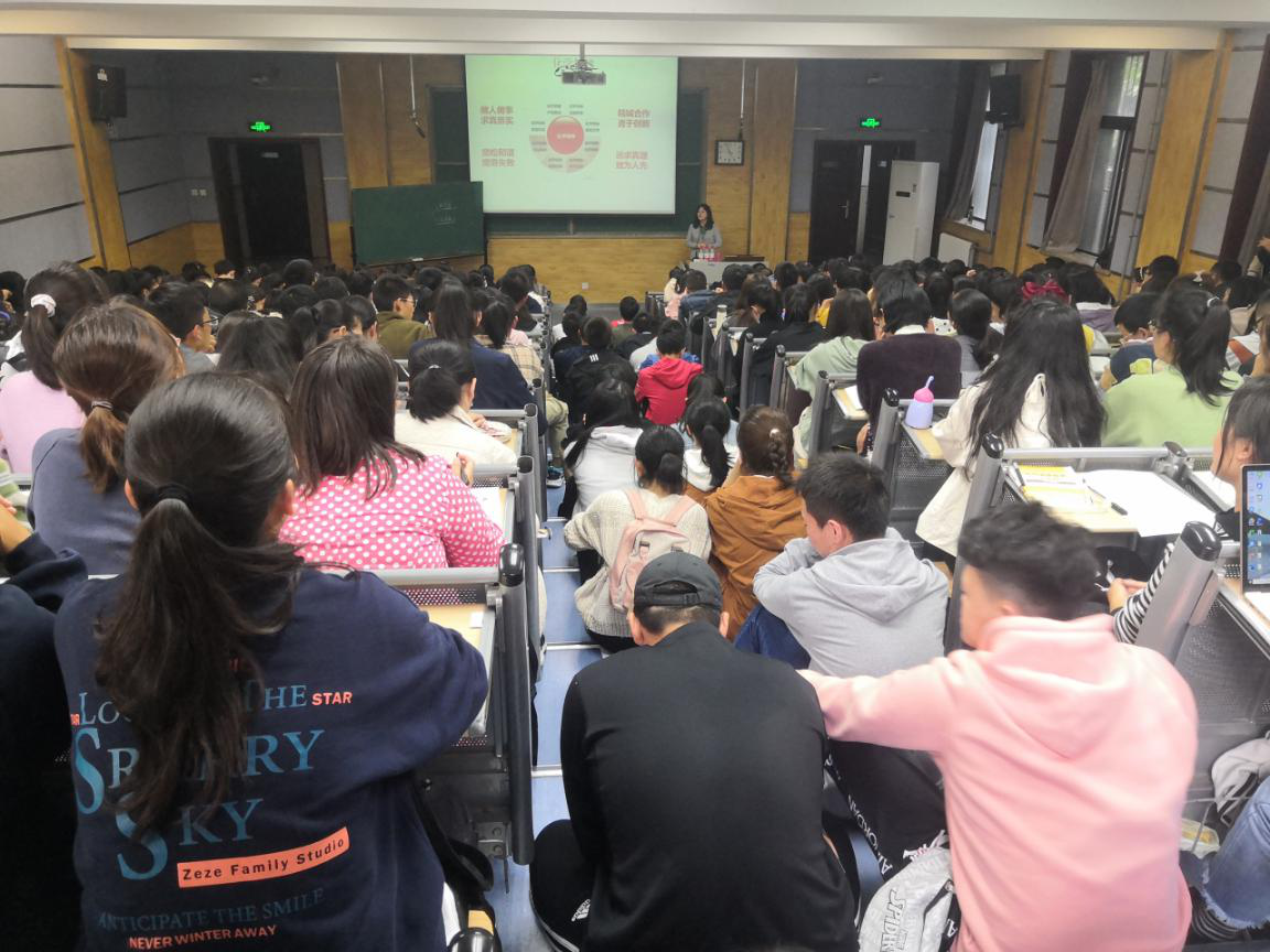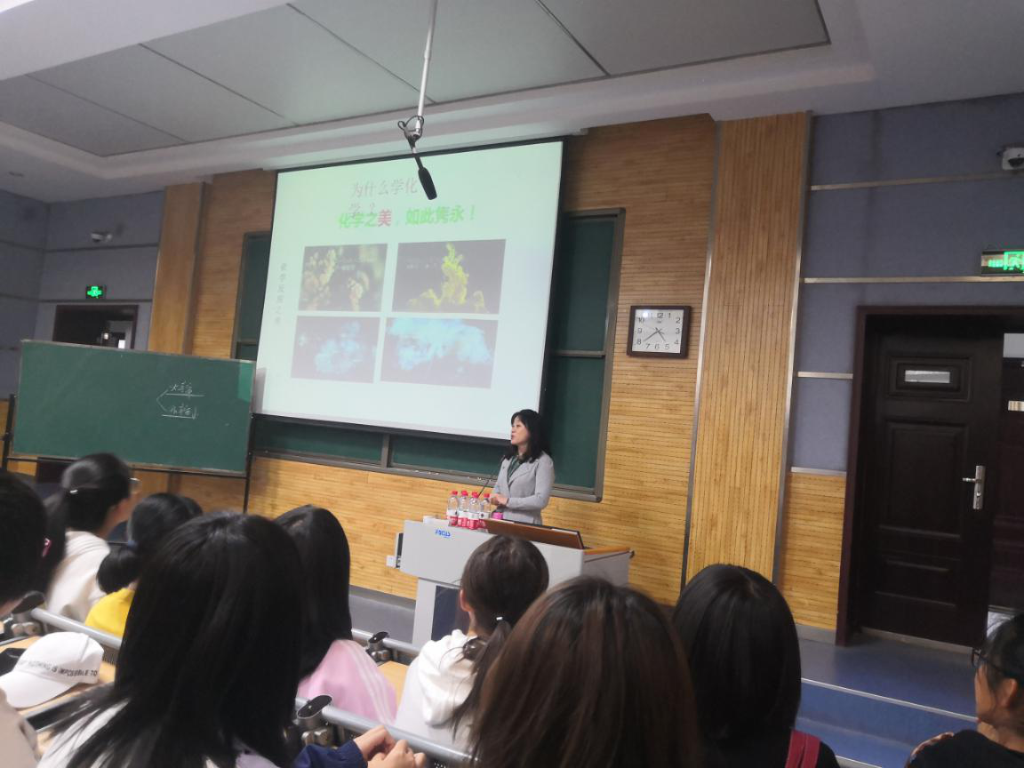 这个大家庭中来。随后王晓向大家隆重介绍了本次教育大会的主讲老师高玲香书记,现场响起了热烈的掌声。高书记为同学们做了“化学之美,如此隽永”的精彩报告,报告首先引出一个问题:我们为什么学化学?化学的本质和精髓是什么?围绕这两个问题,高书记谈到化学给人类社会带来的巨大改变,因为有了化学,我们的衣服有了更加丰富的颜色,我们拥有了更加舒适的生活。化学是创造新物质最多的学科,是化学创造了我们美好的生活。这让同学们明白了化学的魅力所在,也更加对化学这门学科充满兴趣。
