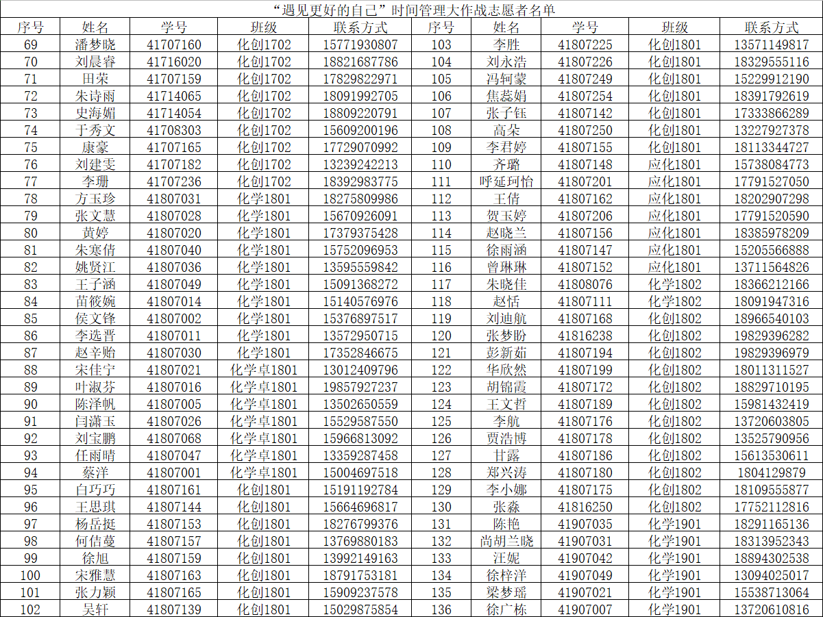 根据《关于公开招募蘑菇视频 “遇见更好的自己”时间管理大作战活动志愿者的通知》要求,按照蘑菇视频 “遇见更好的自己”时间管理大作战活动志愿者招募条件,通过公开招募、自愿报名、择优录取,拟定张丽缘等204名同学为活动志愿者,现予以公示。