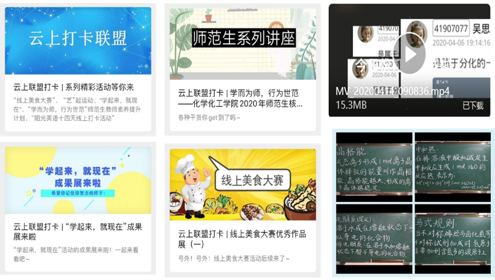 为调动学生学习积极性,提高学生身体素质,丰富学生的居家生活,3月26日,学院学生会推出云上打卡联盟活动,活动分为五个板块,内容涵盖学习、运动、美食、教师素养经验分享等多个方面,累计打卡1300余次。