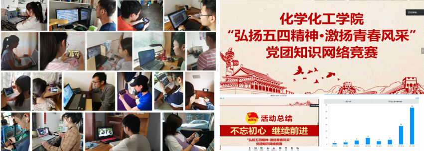五四青年节之际,组织全院青年团员一起观看了“让青春为祖国绽放”网上主题团日活动,感受全国各地青年团结奋进的青春风采;开展“弘扬五四精神·激扬青春风采”线上党团知识竞赛,全院189名同学参与了比赛,活动集知识性、趣味性于一体,激励青年团员进一步学习党团知识,促使青年团员进一步增强责任感和使命感。