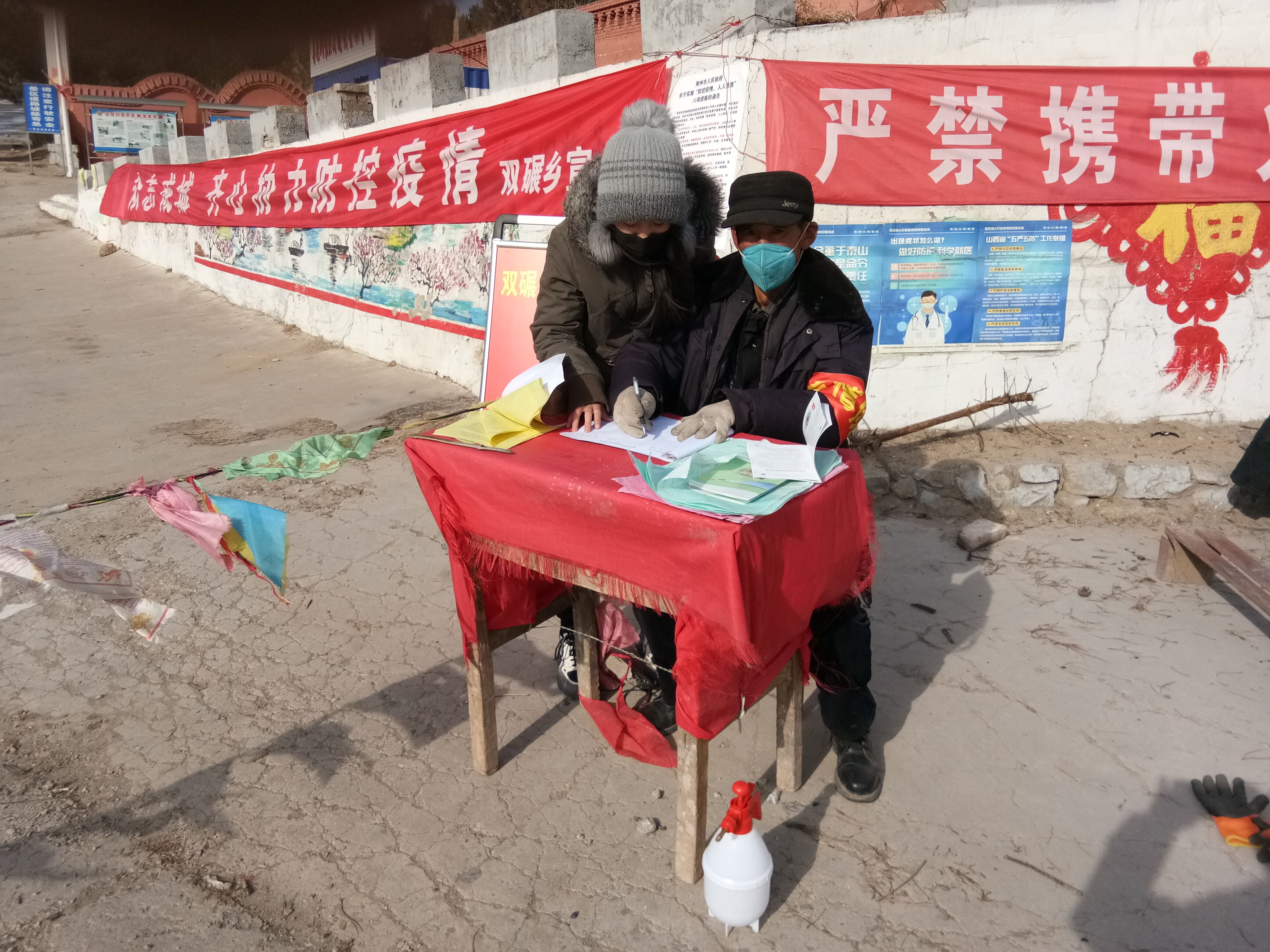 一月底,各省陆续启动重大突发公共卫生事件一级响应,在公共应急层面将疫情防控提到了最优先级别。杨艳同学爷爷奶奶家的村子也开始采取多项严厉措施,有序推进疫情防控工作。村子里开始排查外来人员、隔离外出务工返家人员、张贴防疫通知……看到村干部们忙碌的身影,有五十年党龄、三十年村支书经历、年近七十的爷爷主动提出要加入村里的防疫工作。起初,奶奶不同意,她担心爷爷的身体吃不消,但爷爷说:面对困难,党员要冲在最前头,杨艳打心底里佩服爷爷。于是,她也鼓起勇气报名参加了这项工作,一方面是方便照顾爷爷,另一方面,作为大学生和共青团员,她也想承担一份责任,贡献一份力量。很快,他们一老一小就走马上任了。