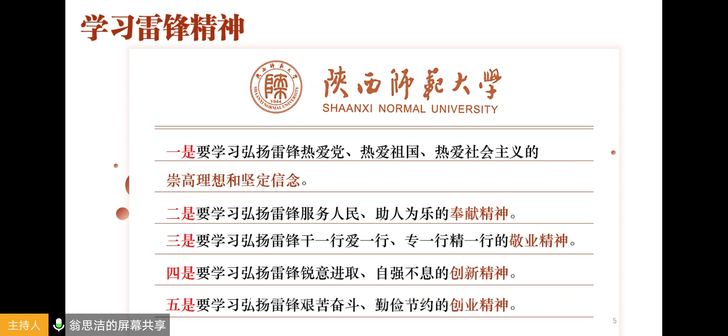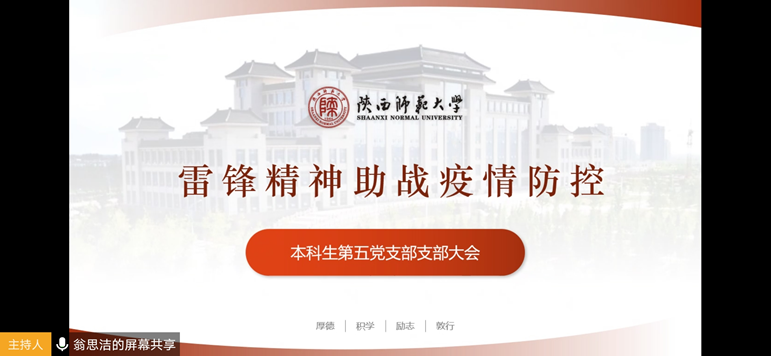 本科生第五党支部于2020年3月5日晚上7点通过腾讯会议平台召开以“雷锋精神助战疫情防控”为主题的线上学习会议。蘑菇视频