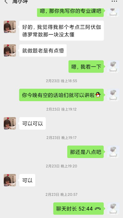 在疫情防控人员子女线上教育帮扶志愿服务活动中,与她结对的庞医生是坚守在发热门诊科的一名医护工作者。虽然聊天次数不多,但是能感受到医生的忙碌与担当。作为一名陕star,自己能做的就是尽自己的青春力量。她在课余时间帮助庞医生五年级的儿子进行课业辅导,巩固学习,希望无数奋战在疫情狙击战中的医护人员没有后顾之忧。