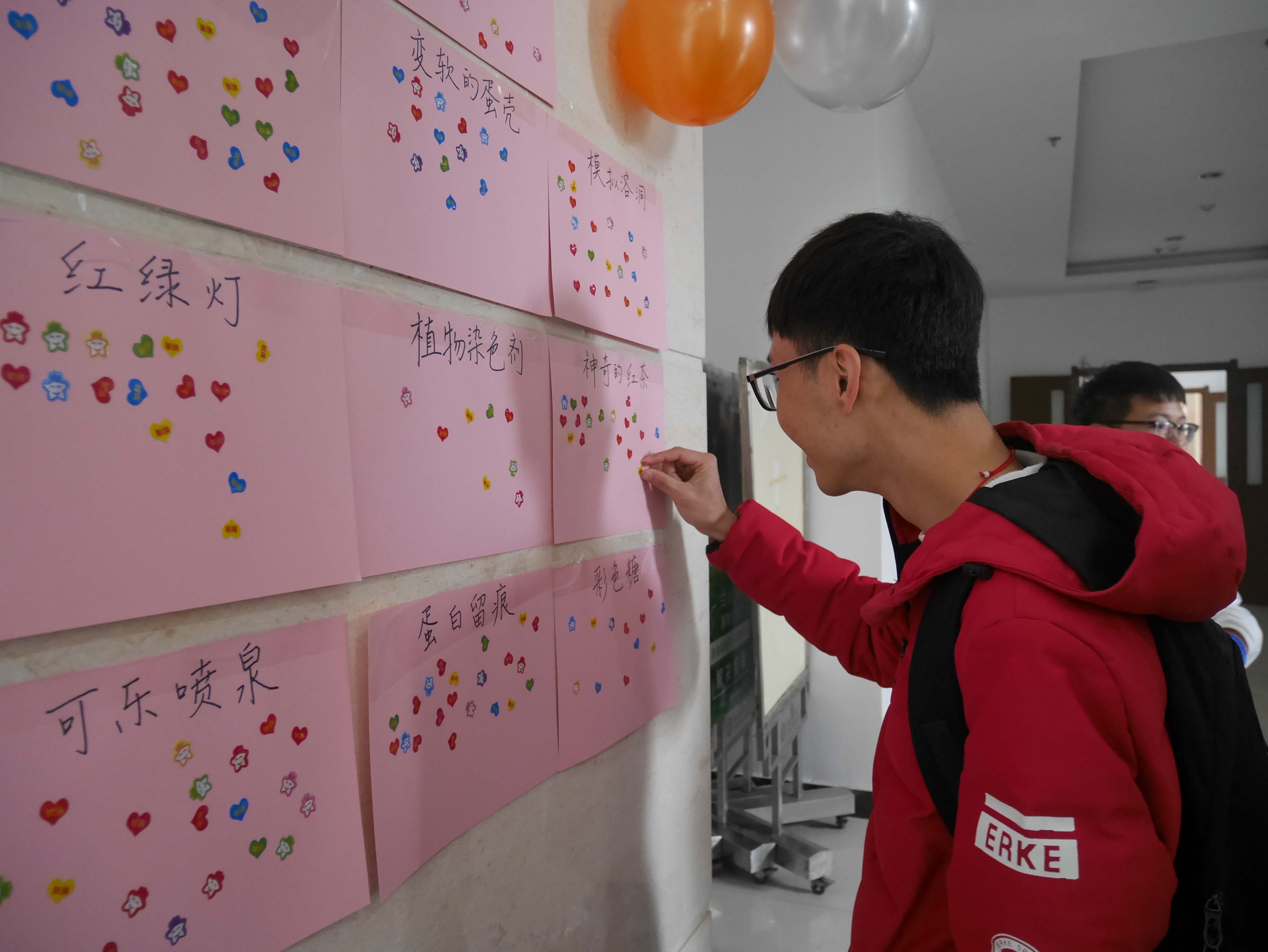 最后,经过各实验团队的精彩展示,现场的师生评选出了获奖团队:一等奖为汽水灯笼团队;二等奖为模拟溶洞团队和柠檬电池团队;三等奖为密信、化学书法、木器刻字三组团队;最佳操作奖为红绿灯、防火布、蛋白留痕、可乐喷泉、巧钓冰鱼、变软的蛋壳、彩虹糖、紫包菜实验、植物染色剂9组团队;最受欢迎奖为神奇的红茶、叶脉书签、模拟溶洞3组团队。