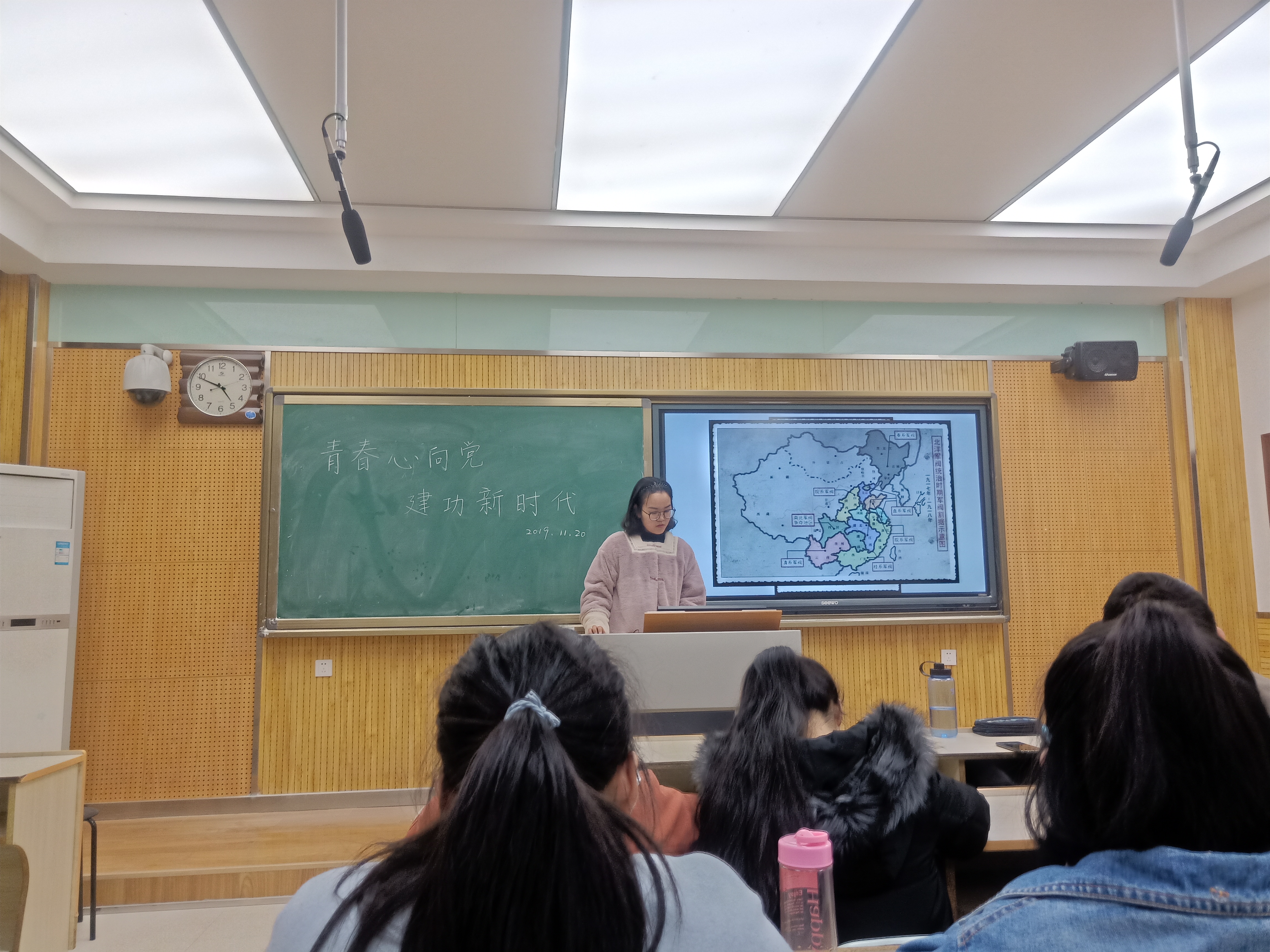 化卓1801团支部于教学八楼举办“青春心向党,建功新时代”主题团日活动,围绕学习贯彻习近平新时代中国特色社会主义思想展开,旨在探讨当代师范生如何结合自身优势发展中国特色社会主义,在班级范围内展开大讨论。本次活动由团支书王新月主持。