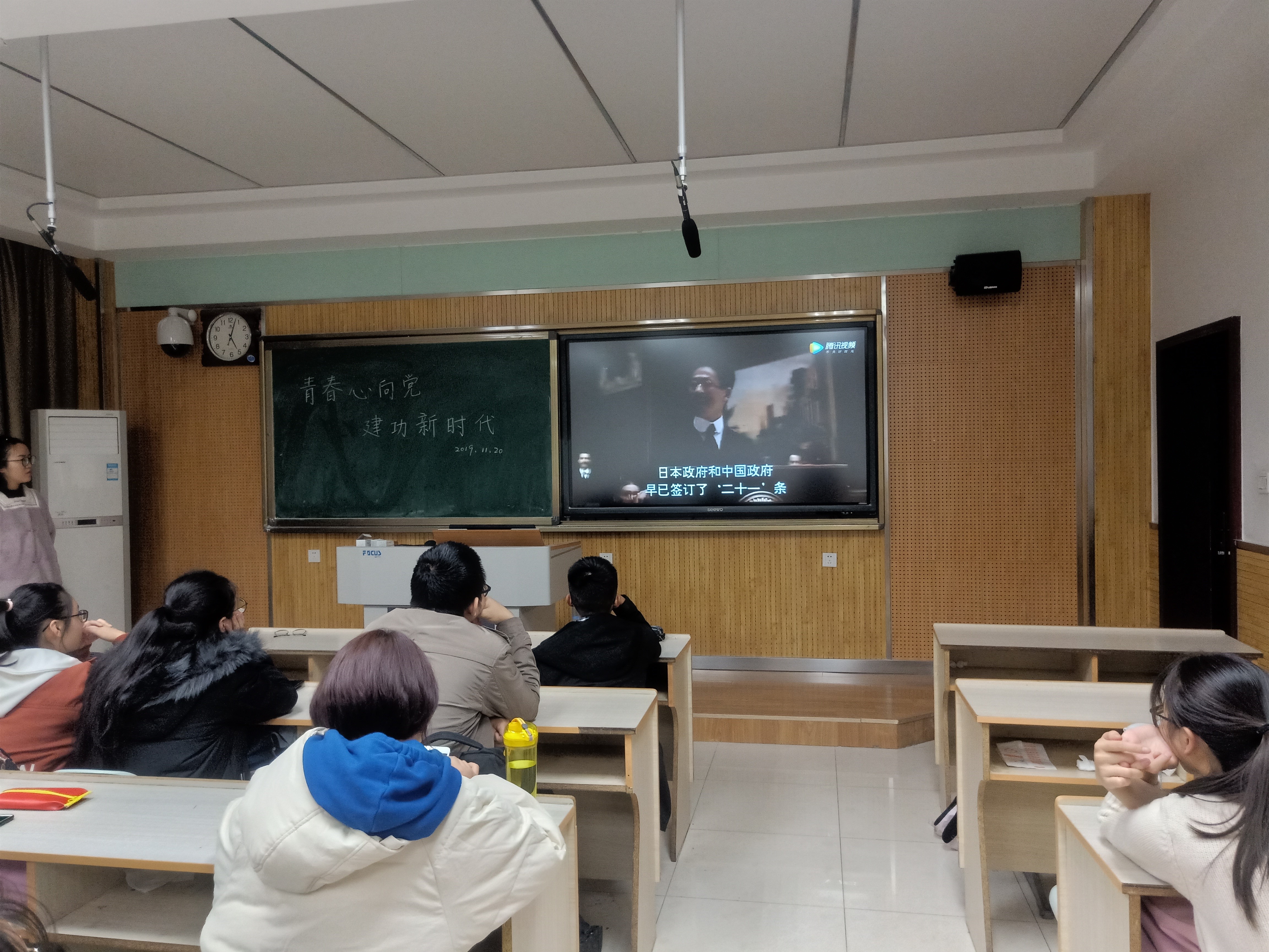 随后,同学们一起观看以“五四运动”为主题的电影《我的1919》片段,部分同学针对影片内容发表了自己的看法。在观看电影的过程中,同学们既为顾维钧不屈不挠的斗争而热血澎湃,也因政府的软弱无能而感到气愤,激发出愤慨激昂的爱国之情。