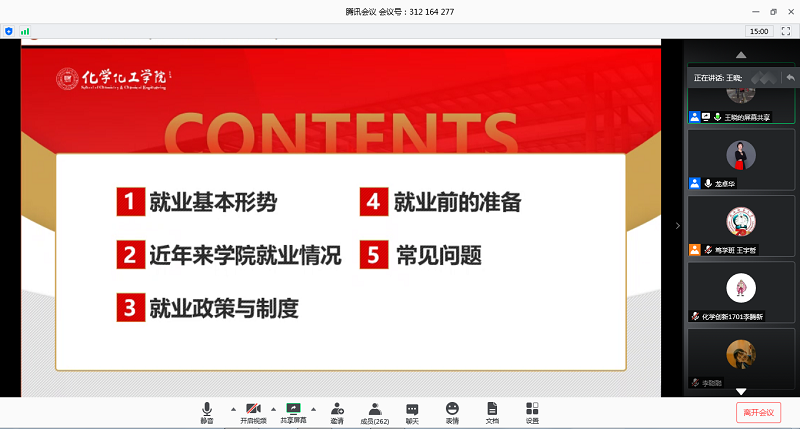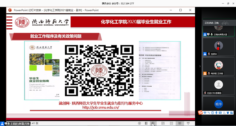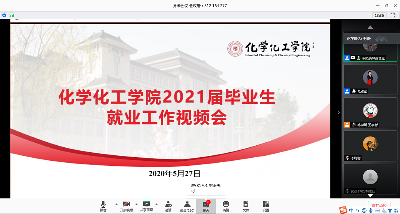 将2021届就业指导工作前置,于5月27日晚组织开展了就业工作视频会。本次会议利用腾讯会议网络平台,学院党委副书记王晓老师主讲,2017级本科生辅导员龙卓华老师和2017级全体本科生参加。