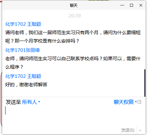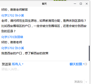 学子树立合理择业观,对自己进行准确合理的定位。随后,王老师向2021届学生提出几点要求:一是做好充分地就业准备,主动关注就业信息;二是具备过硬的知识、能力储备,学会掌握面试方法和技巧;三是返校后能珍惜时间,运用学校的平台和资源,积极做好就业前期准备工作,在毕业选择上掌握主动权。最后,王老师还就同学们密切关注的师范生实习、教师资格考试等问题进行了解答。