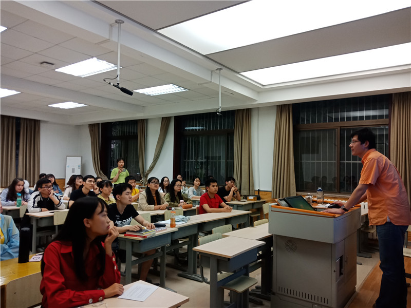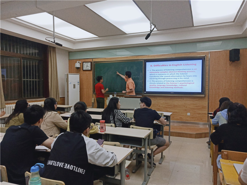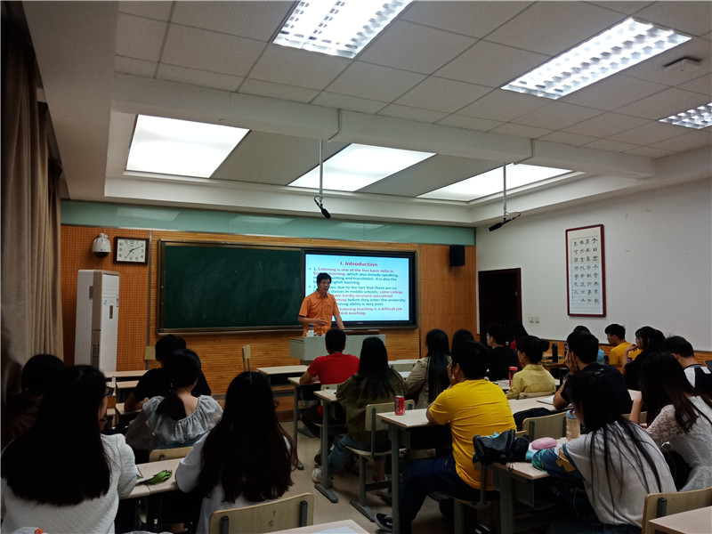 七点十分,活动准时开始。外国语学院的郭英杰老师直切主题,直接明了的指出大部分同学在英语听力方面存在的问题,并用一首诗向同学们诠释学习三境界,在此境界中提出了存在问题对应的解决方法,提倡同学采取渐进式、鼓励式坚持练习听力,“念念不忘必有回响”。老师还为同学推荐了最基础的练习听与“写”的歌曲与电影。