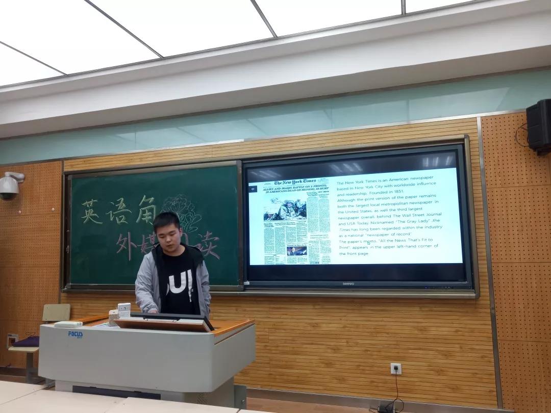 为培养同学们对英语学习的兴趣,增进同学们对外国媒体的了解,笃学化学实验班1701联合化学1702班于2019年4月27日19:00在雁塔校区教学五楼开展了以“外媒阅读”为主题的分享交流活动。