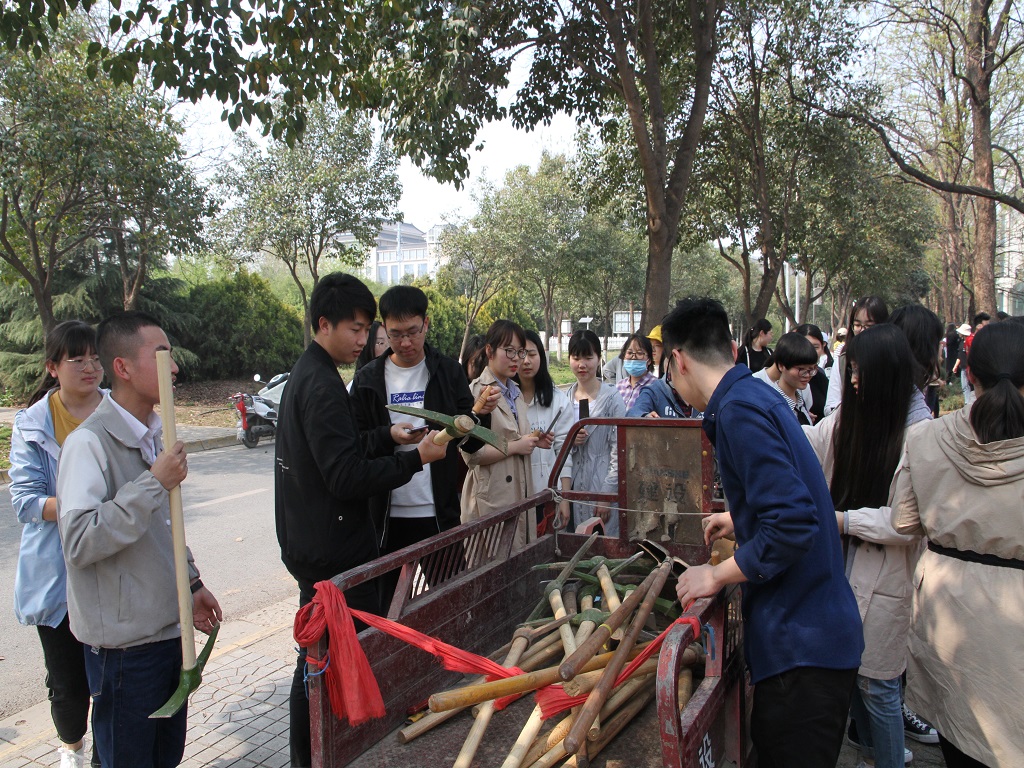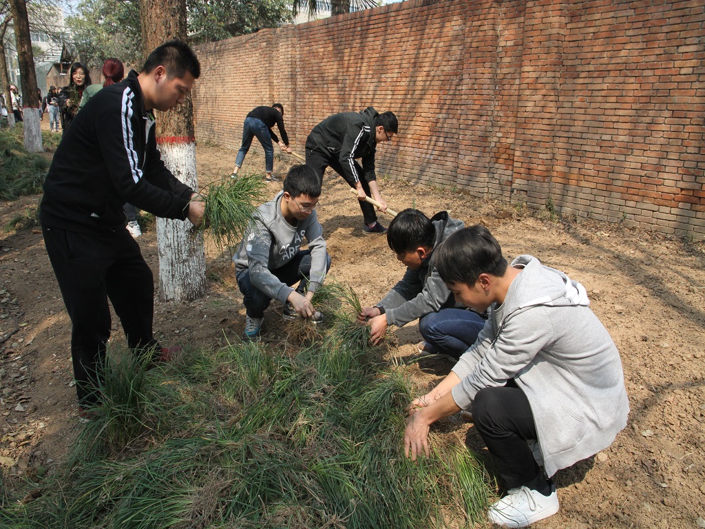 于2019年4月3日下午组织学生党员、学生干部以及初级团校成员等同学,在长安校区进行“植树种草,美化校园”劳动教育实践活动。学院副书记王晓老师,团委书记陈钿老师,辅导员谢遵园老师、牟朝丽老师与学生共同参加劳动教育实践活动。
