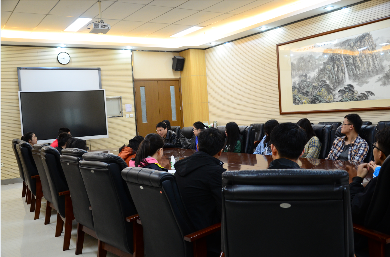 王晓向参会同学分析了当前就业形势,介绍了学校和学院非师范生就业进度的情况,学生就业工作已经进入攻坚克难的关键时期,希望同学们把握好机遇,尽可能加快就业进度,谢遵园在前期就业情况筛查的基础进行了就业情况和进度的更新,向每位同学询问了目前的就业进展情况,36名同学中,已完成签约或协议书正在签署中的有14人,选择继续备战研究生考试有10人。王晓和谢遵园详细询问了同学们在就业过程中遇到的问题,并结合往届生的就业案例给予了相关指导。