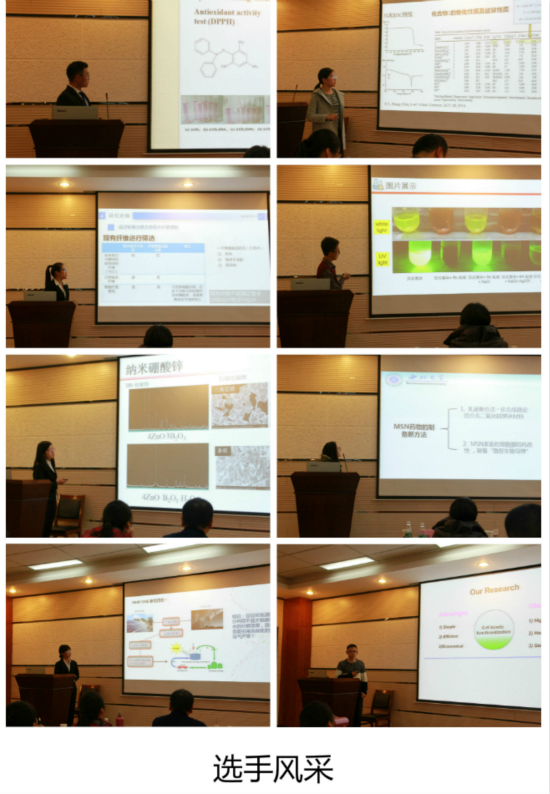 2015级笃学班的4组本科生科研团队和西北大学化学与材料科学学院的4组本科生科研团队进行交流。8组选手依次展开报告:来自蘑菇视频