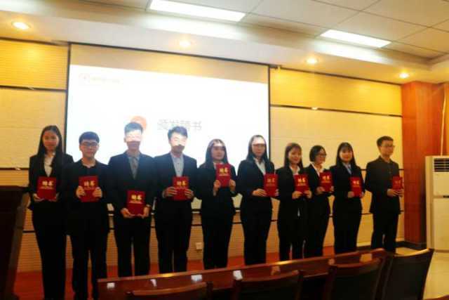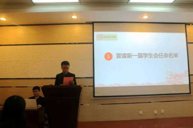随后,团委副书记张全全宣读了新干部任职名单,并由学生会主席罗娜为新一届学生会干部代表颁发聘书。