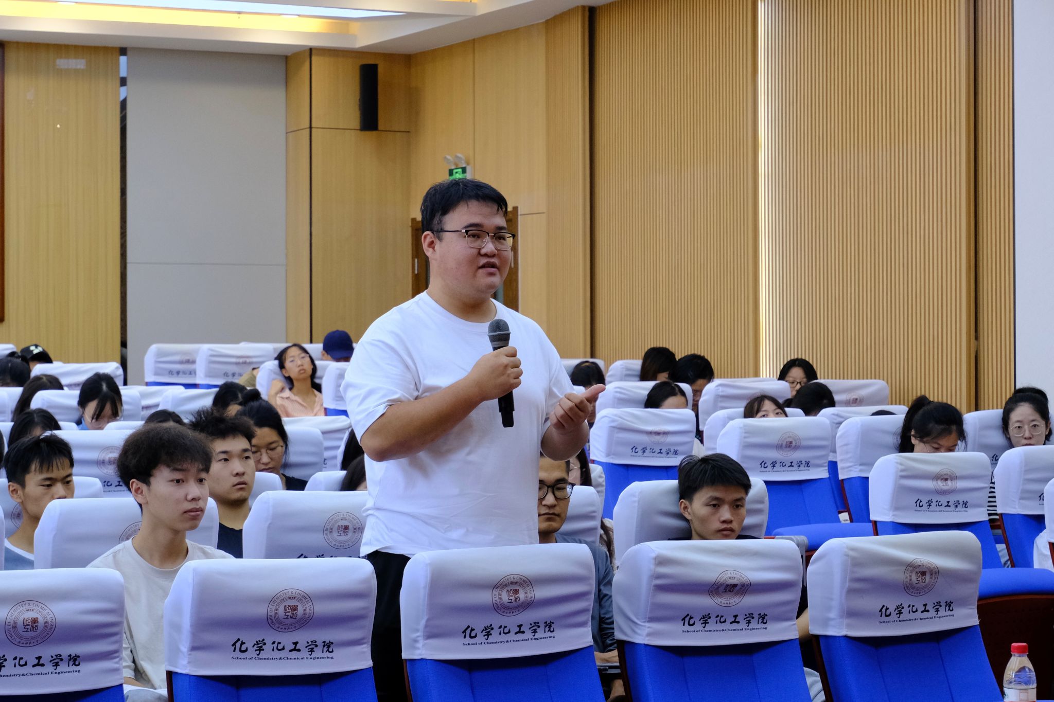 座谈会中,陈老师针对通过辅导员老师收集的同学们比较关心的若干问题,对同学们进行了叮嘱:1. 做个有心人,多关注一些讲座、报告,从课外提升自己;2. 和老师配合,学会交流,更有效的提高学习效率;3. 选修课与必修课学习方法不同,但是起的作用亦不同,都要认真听讲;4. 根据学院的安排将研究型实验和毕业论文结合起来,多在实验室做实验;5. 做好休息的同时亦可锻炼教学素养,可通过练习粉笔字、语言表达能力等方式;6. 在实习之前学习一些班主任管理工作的技巧,更有助于在实习中学以致用。