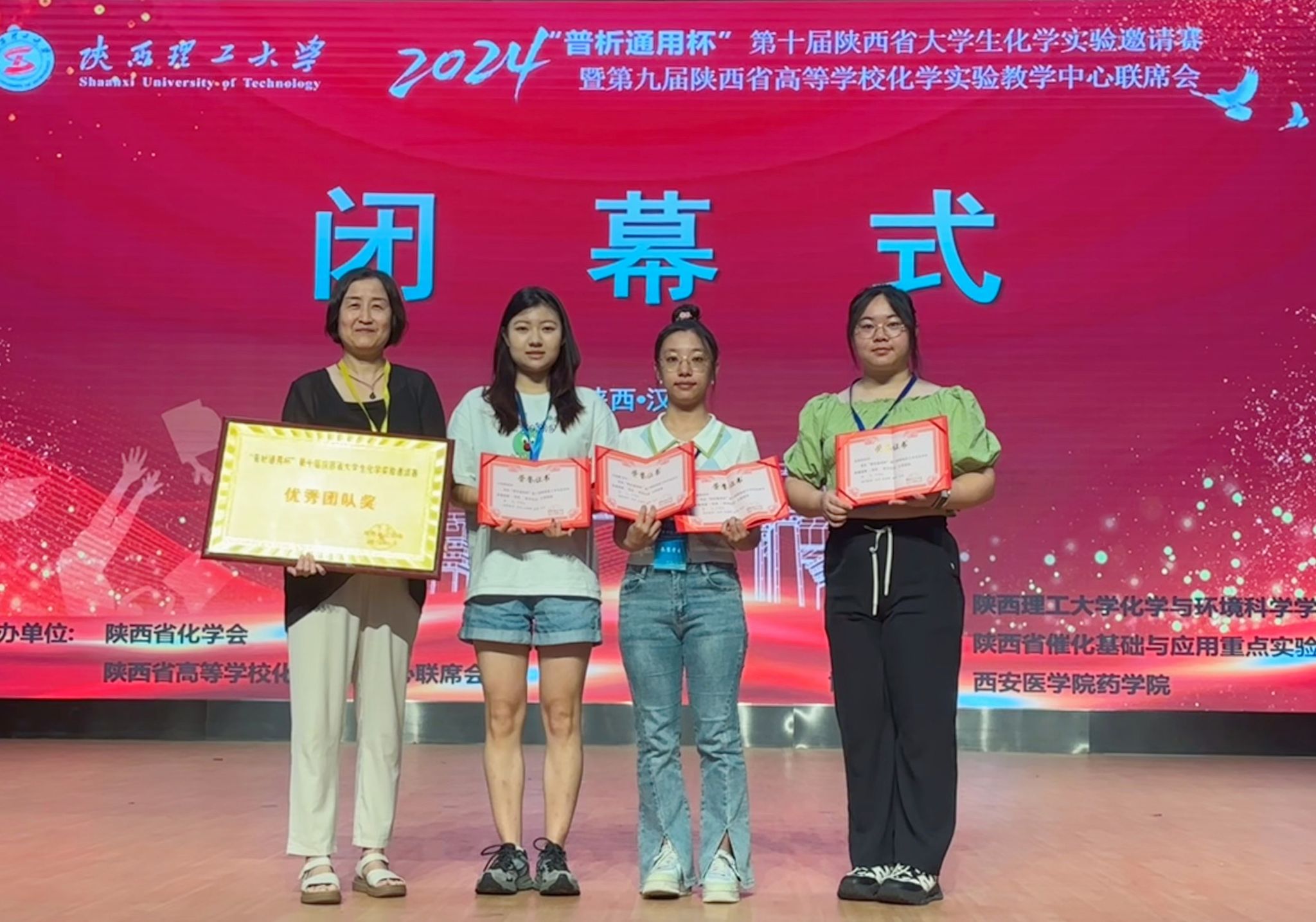 国家级实验教学示范中心办公室主任严军林、分析教研室刘伟老师带队四名本科生参加比赛。经过激烈角逐,2021级本科生杨鑫越、王雨萌、卓雨馨同学分别获一等奖,田雨欣同学获二等奖,蘑菇视频