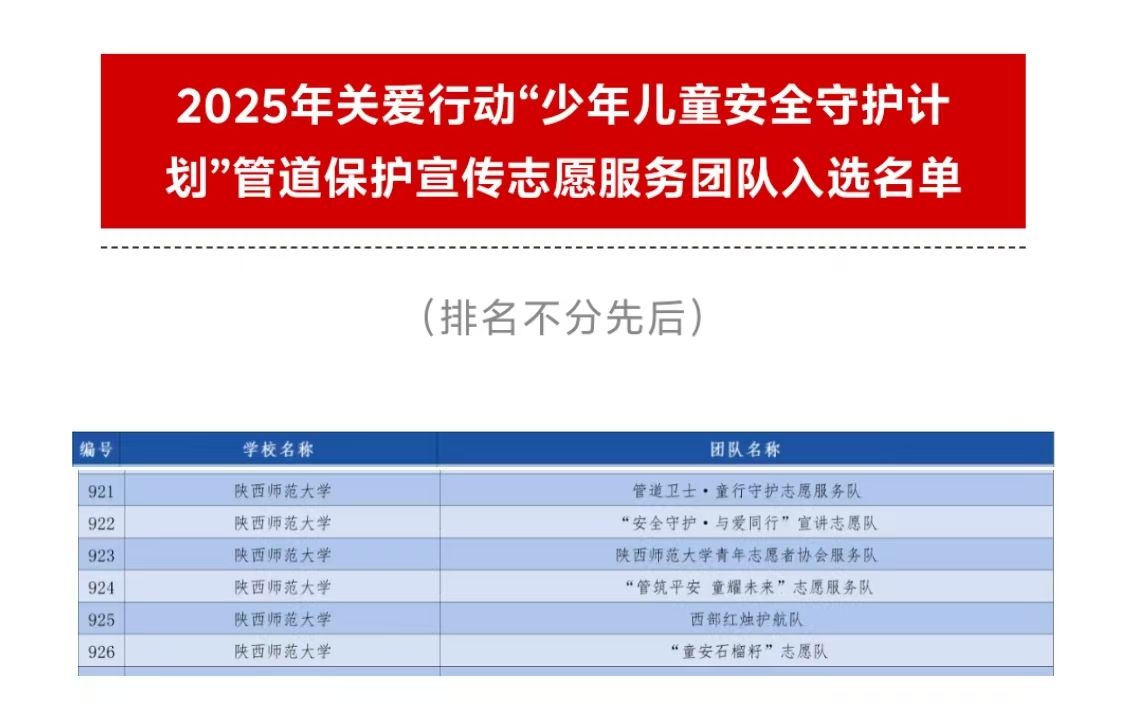 近日,团中央青年志愿者行动指导中心公布了2025年关爱行动“少年儿童安全守护计划”管道保护宣传志愿服务团队名单,蘑菇视频 本科生第三党支部组建的管道卫士·童行守护志愿服务队成功入选。