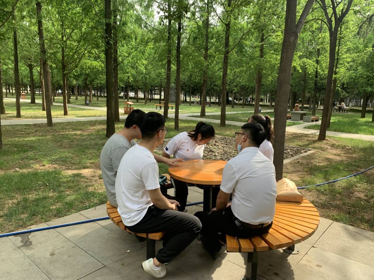 在自由活动环节,同志们分小组畅谈交流,虽然本次活动的形式是户外活动,但活动过程中仍然十分注重思想方面的学习。尤其是刚刚结束的“两会”,大家就热点问题和一些新的议案以及新通过的各项法案等发表自己的看法和见解,不断思考作为研究生党员所能做出的努力。虽然天气炎热,但同志们讨论的热情也十分高涨,轻松舒适的环境氛围更加促进了大家的交流思考,也使同志们进一步认清了自己的责任和使命,受益良多。