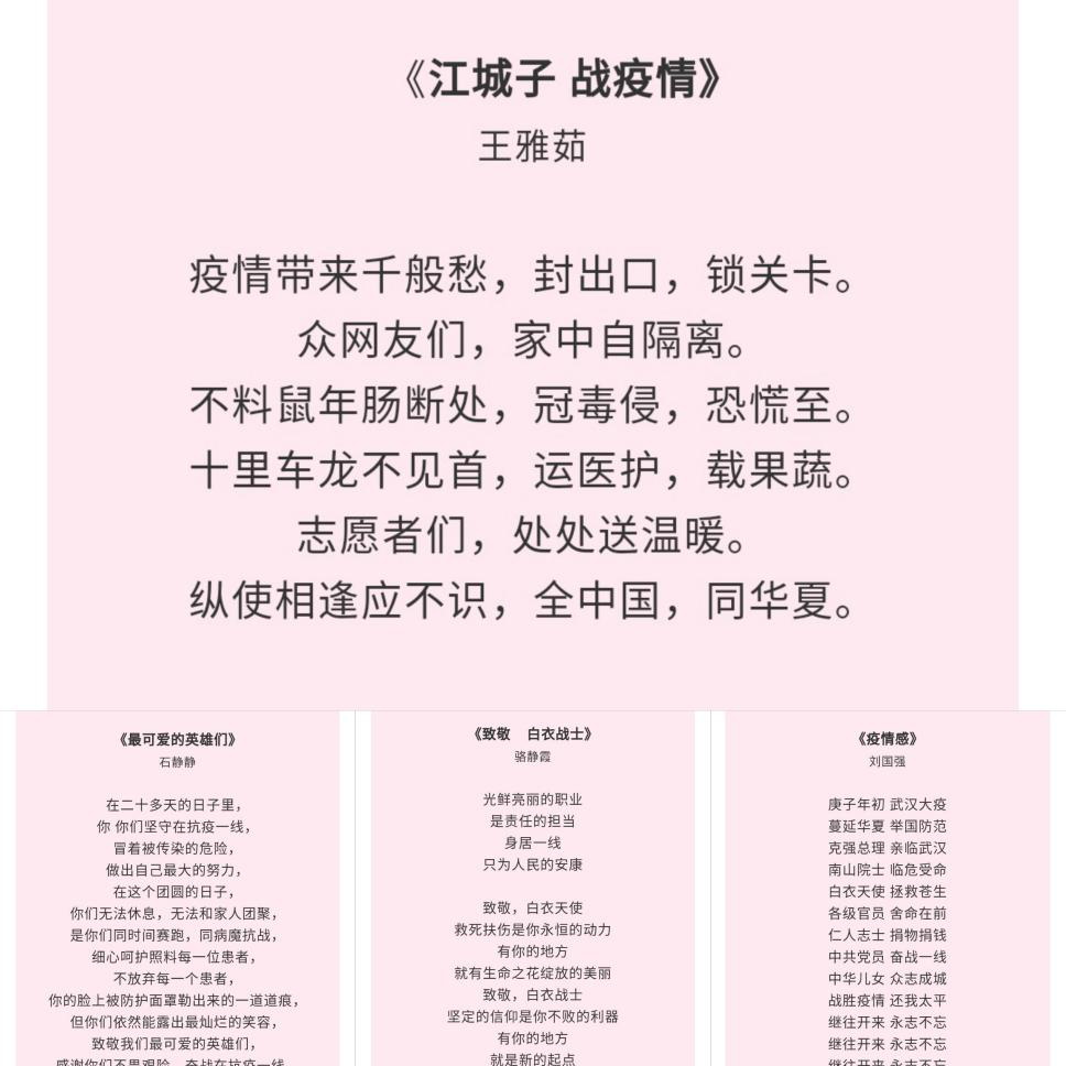 新一代青年学生党员,希望用这些作品,凝聚起众志成城、全力以赴、共克时艰的强大正能量,以自己独特的形式鼓舞人心,凝聚斗志、讴歌英雄、传递正能量,为武汉加油、为祖国加油!
