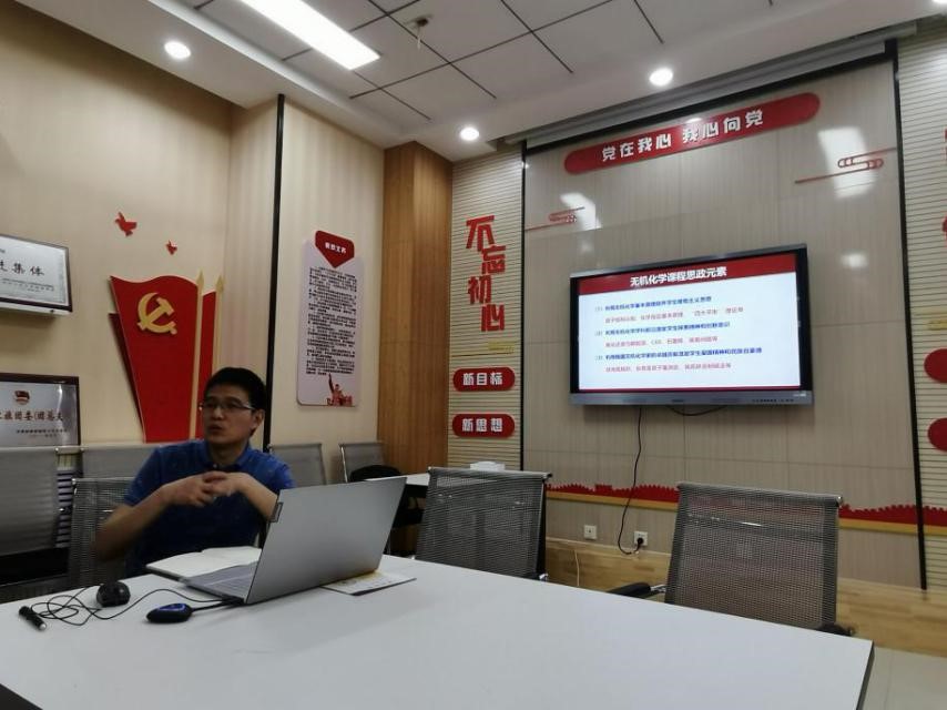 6月17日下午,教工物理化学党支部在致知楼1568会议室召开关于课程思政建设的支部会议。肖新军副院长为教工物化支部做了题为“同向而行-思政教育的显性教育和隐性教育”的专题报告,就课程思政教育、思政课程和课程思政、认识和思考等方面为大家全方位介绍了课程思政的重要性以及如何结合化学专业开展课程思政教育。王晓副书记根据蘑菇视频